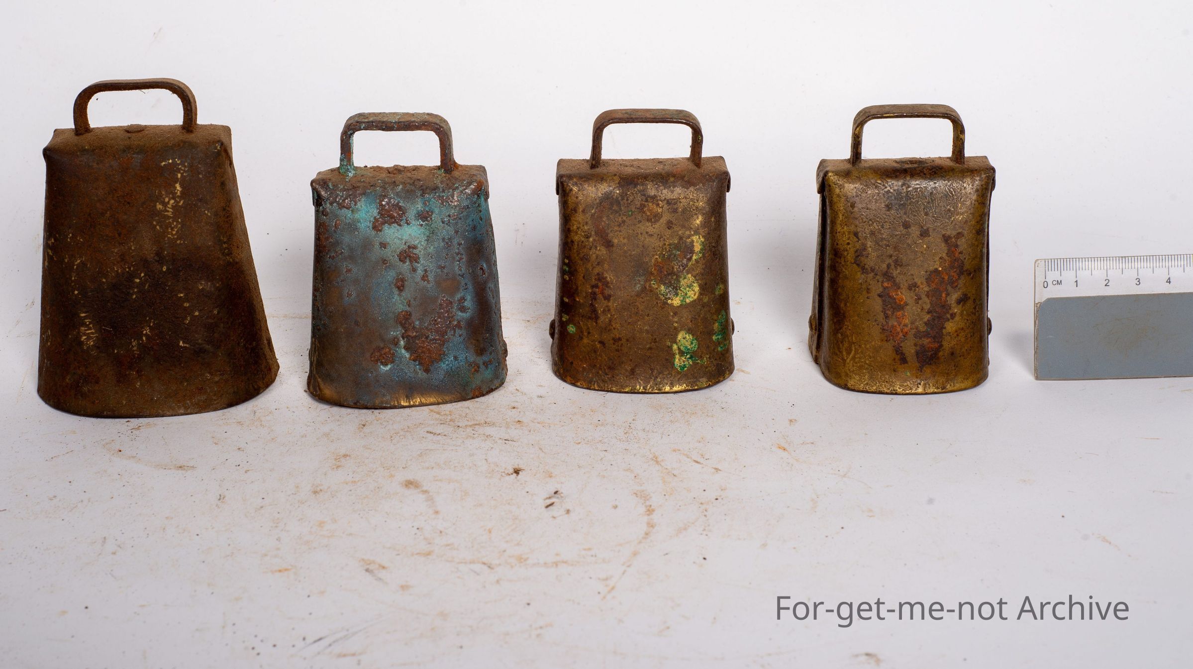 This is a group of smaller bells that may have been used on goats, sheep, or other small animals. These are known as Kentucky style. They've been all pressed, forged from iron, sheet iron, and have spelter on them to preserve the life.Collection