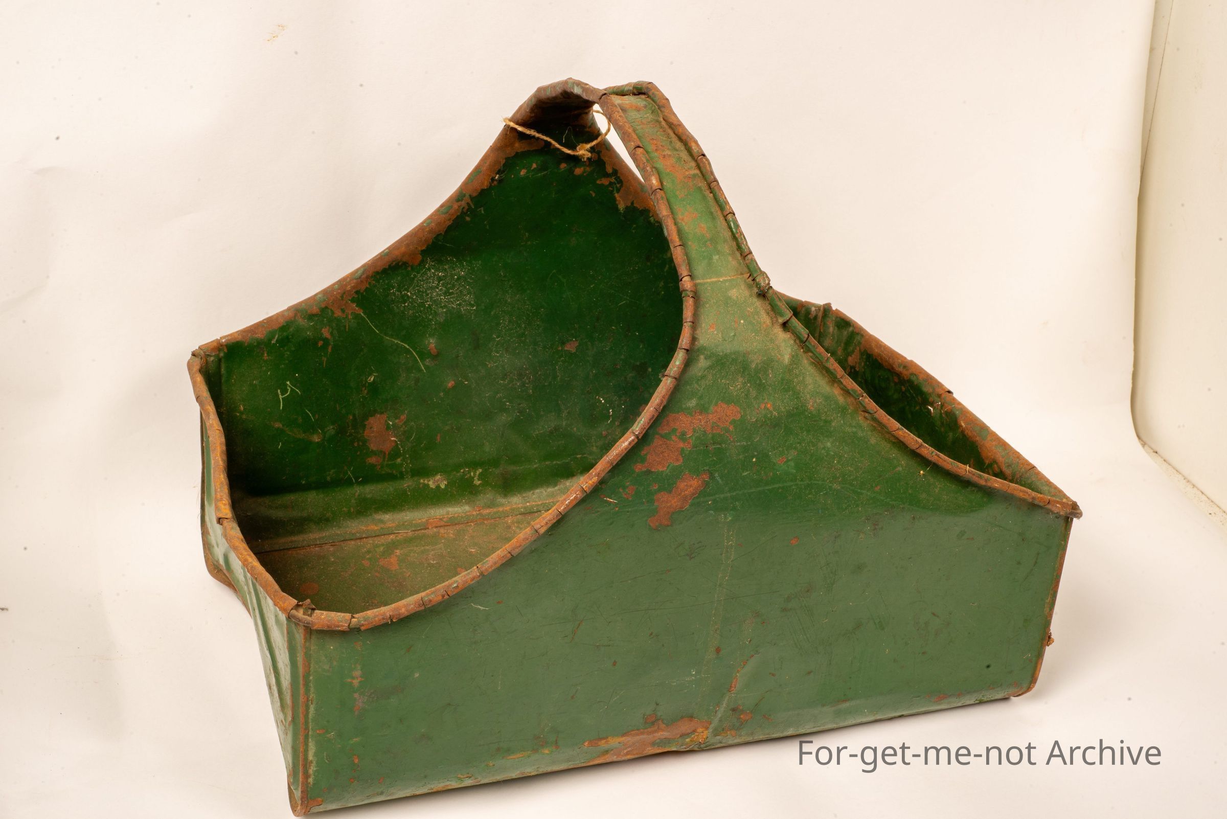 Another depression era homemade basket made from a 4 gallon kerosene tin. The handles built into it. All the edges are rolled, so there's no cutting. The rolled sections