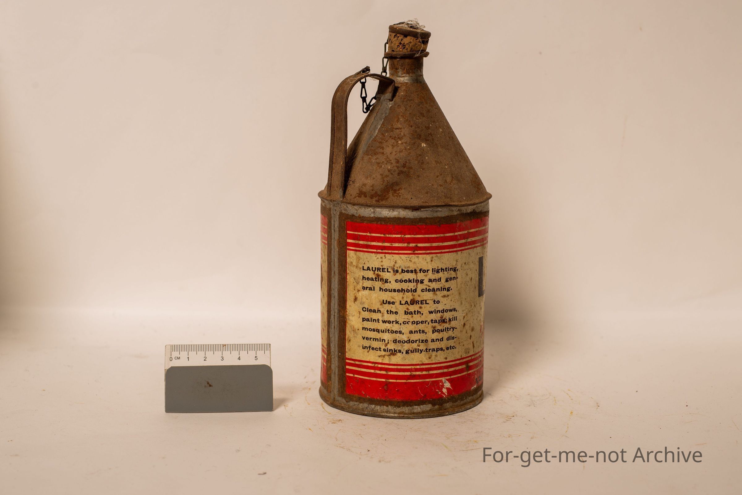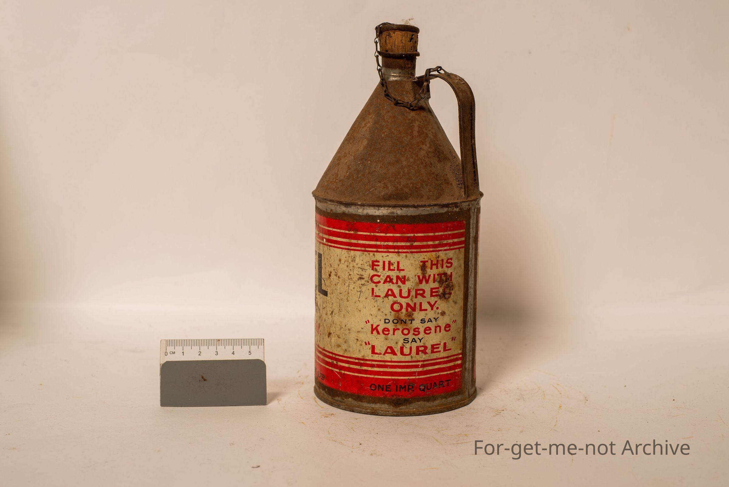 Is a wall Kerosene Tin with a cone top. The soft white light vacuum oil company. This is an early tin in fairly good condition considering the age 1 imperial quart,