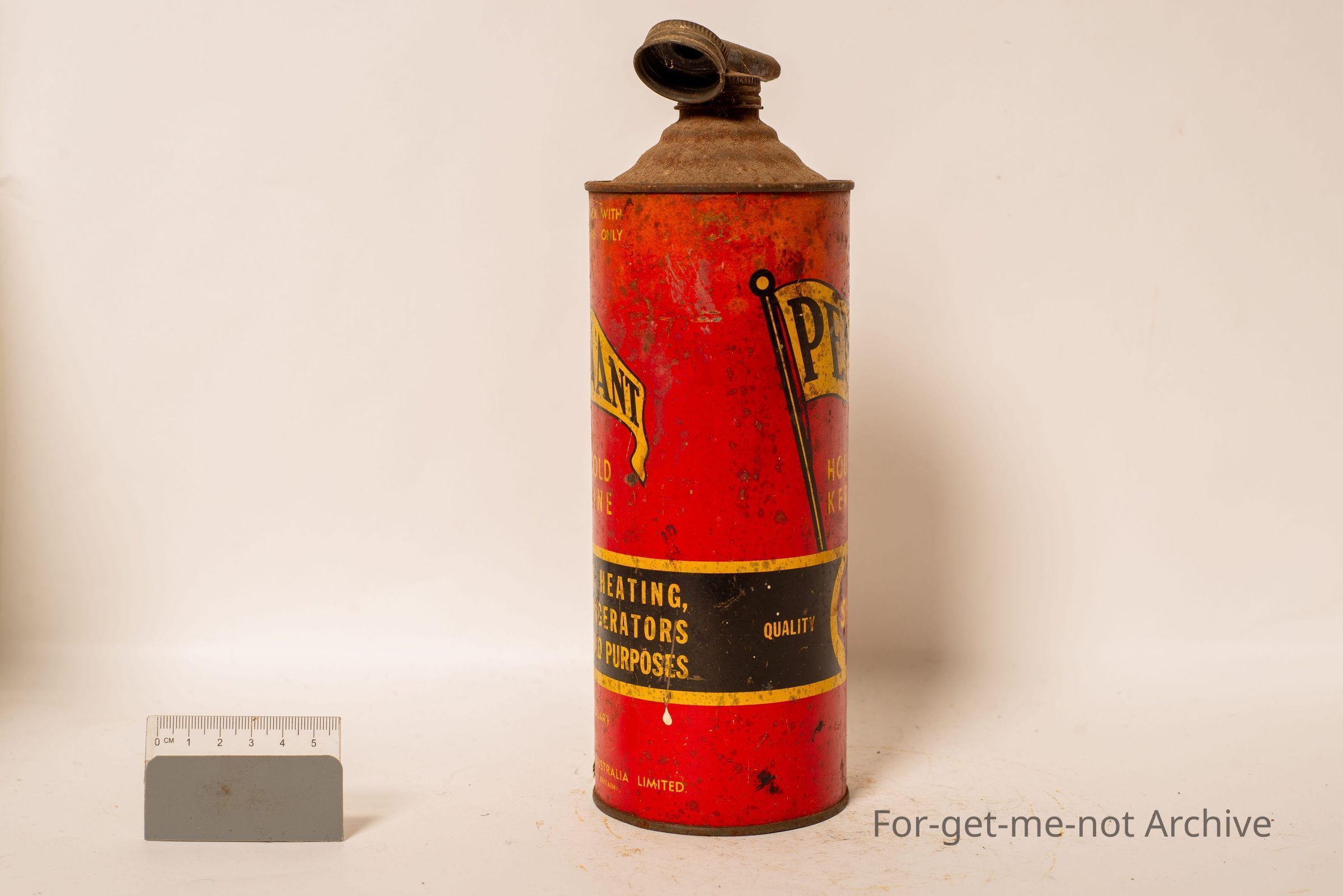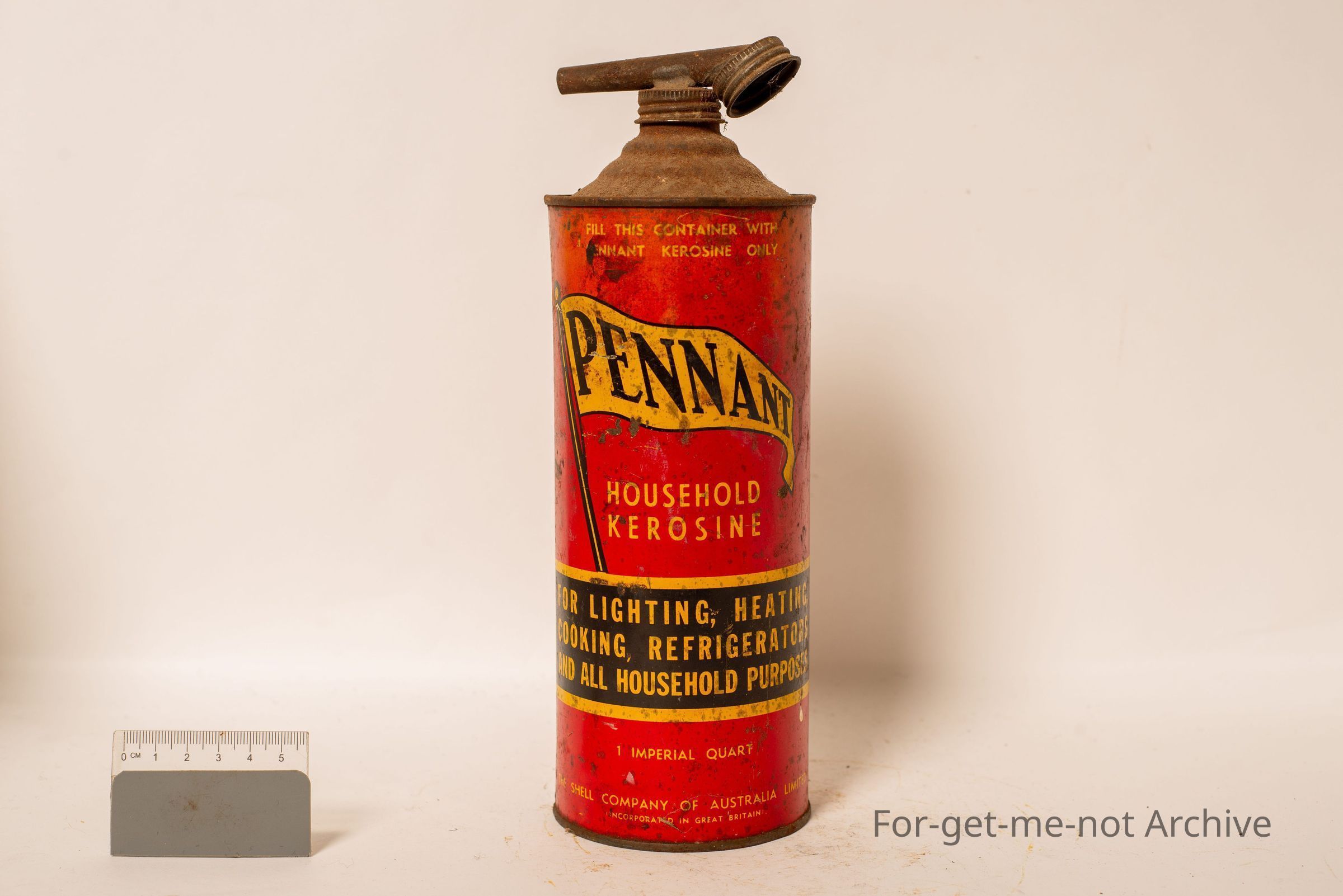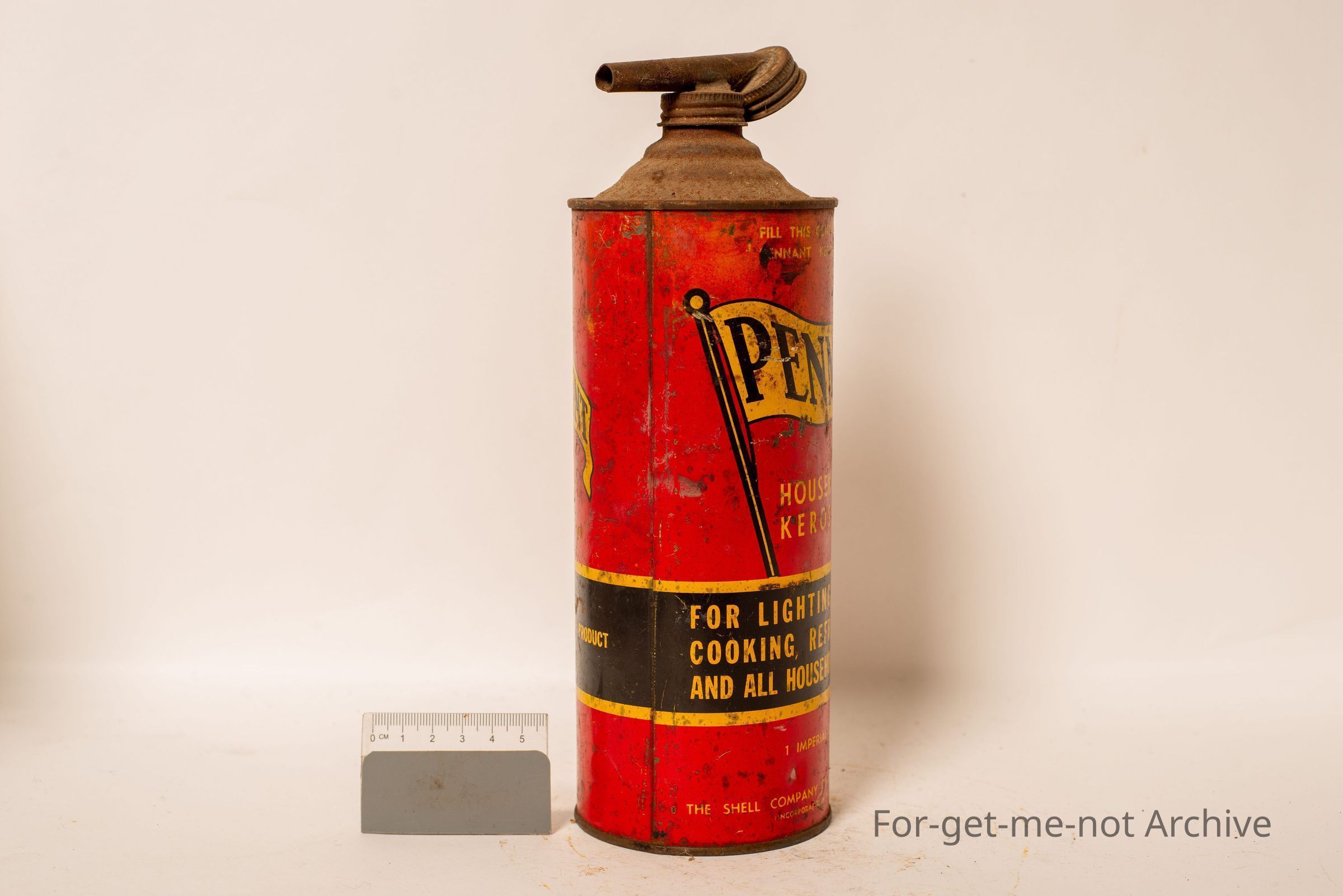 Is a tin of Pennant household Kerosene, a shell product, for lighting, heating, cooking, refrigeration. One imperial quart.
