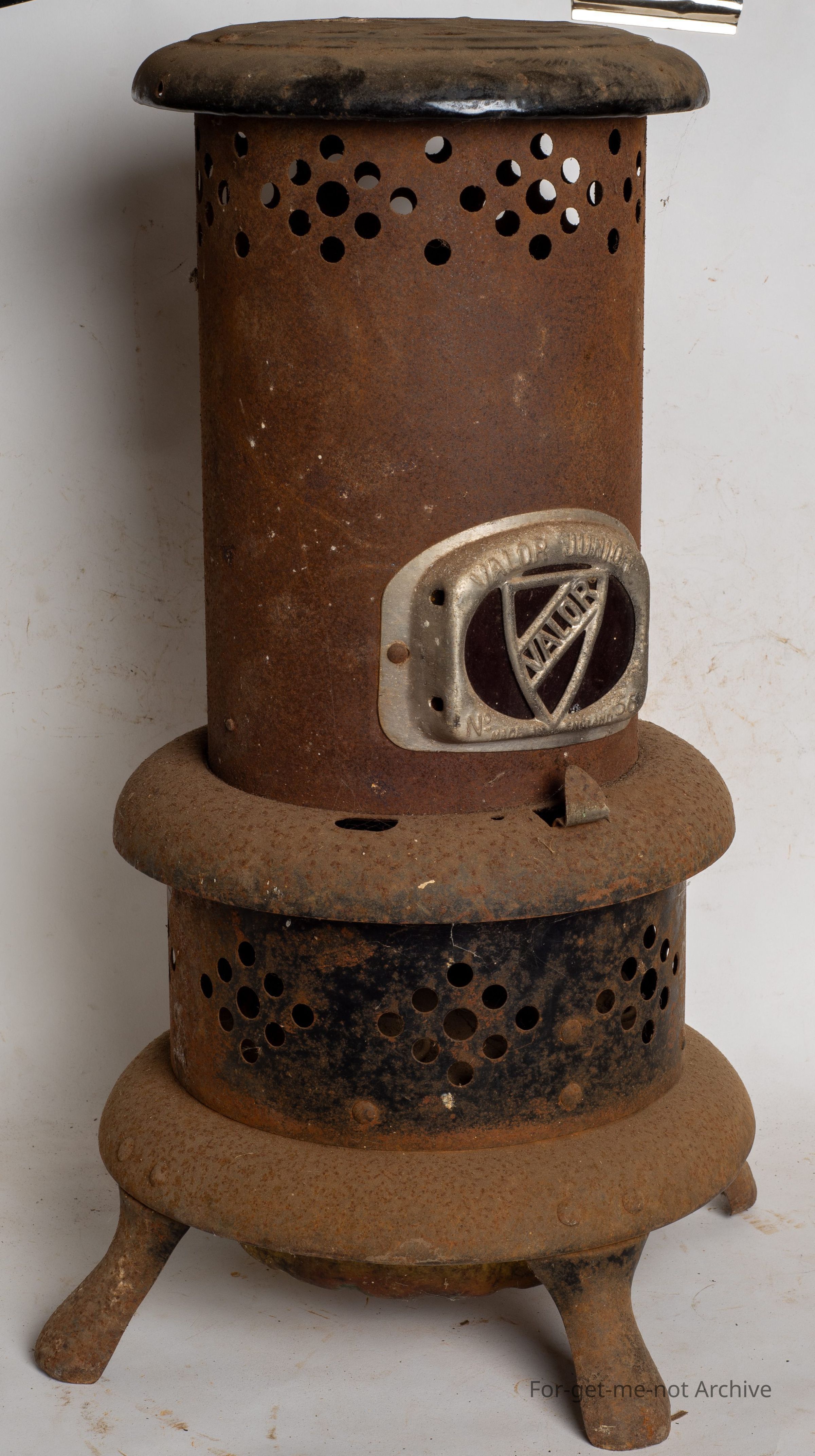 This is a kerosene heater. Stands on 4 legs. All metal construction, called the Valor. Little red light. It to so you can see that it is lit properly.