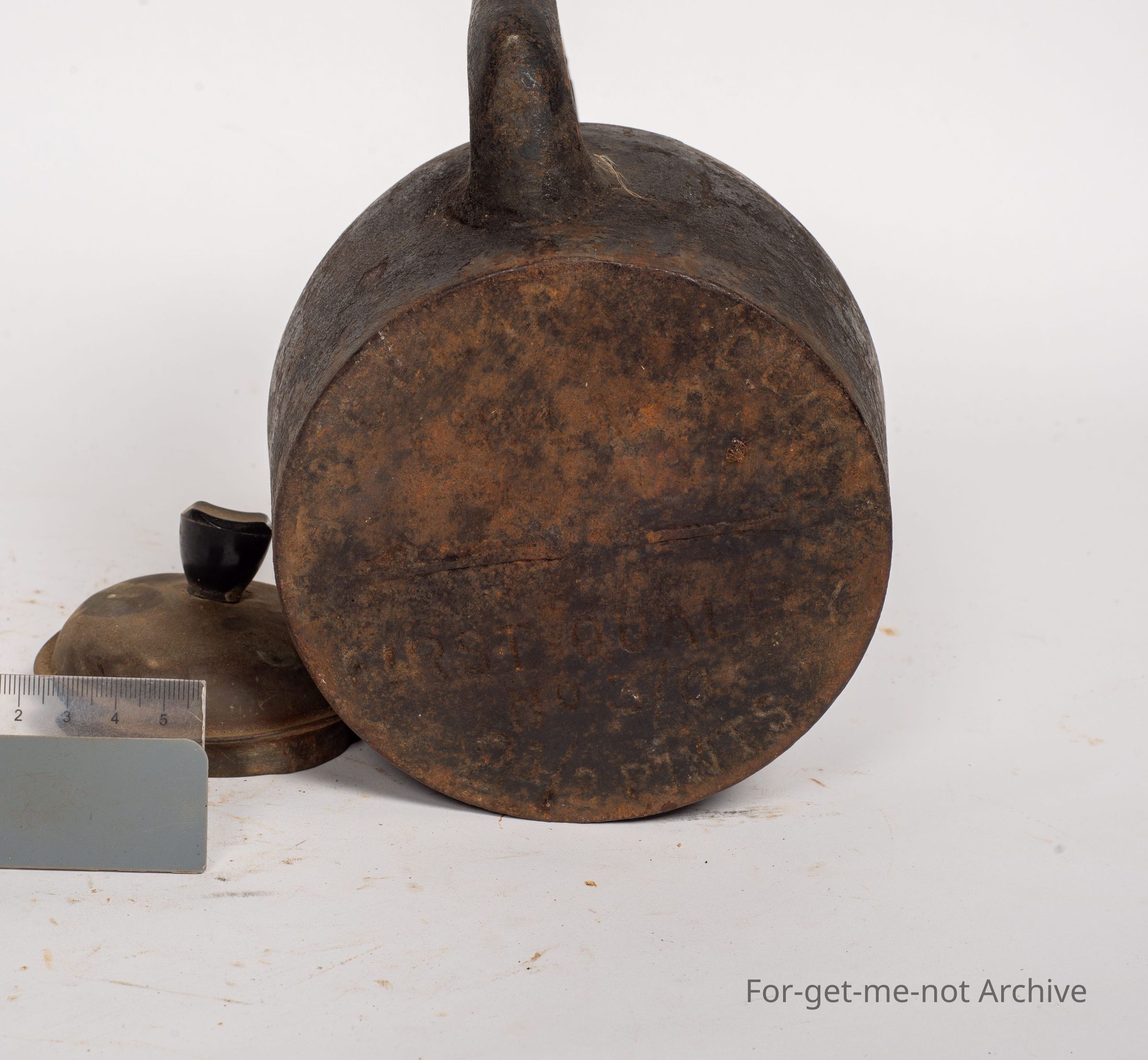This is a glorious small size, cast on kettle from Clark. First quality, 2 and a half pint capacity. This one has the enamelled internal, in beautiful condition with the lid stopper still intact.Collection