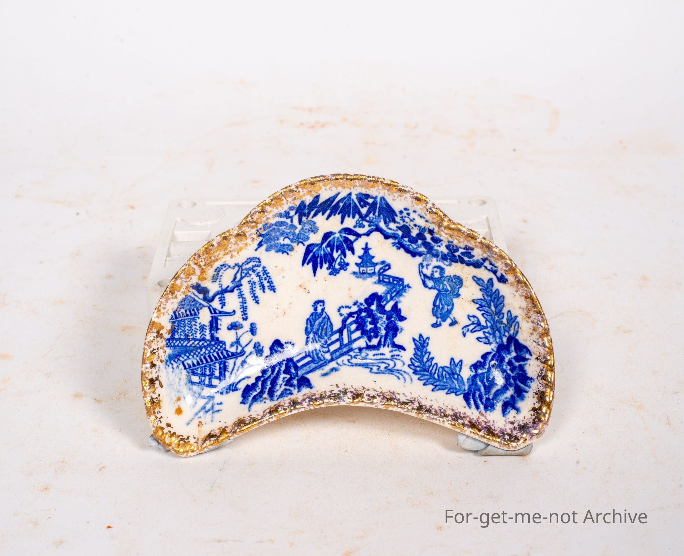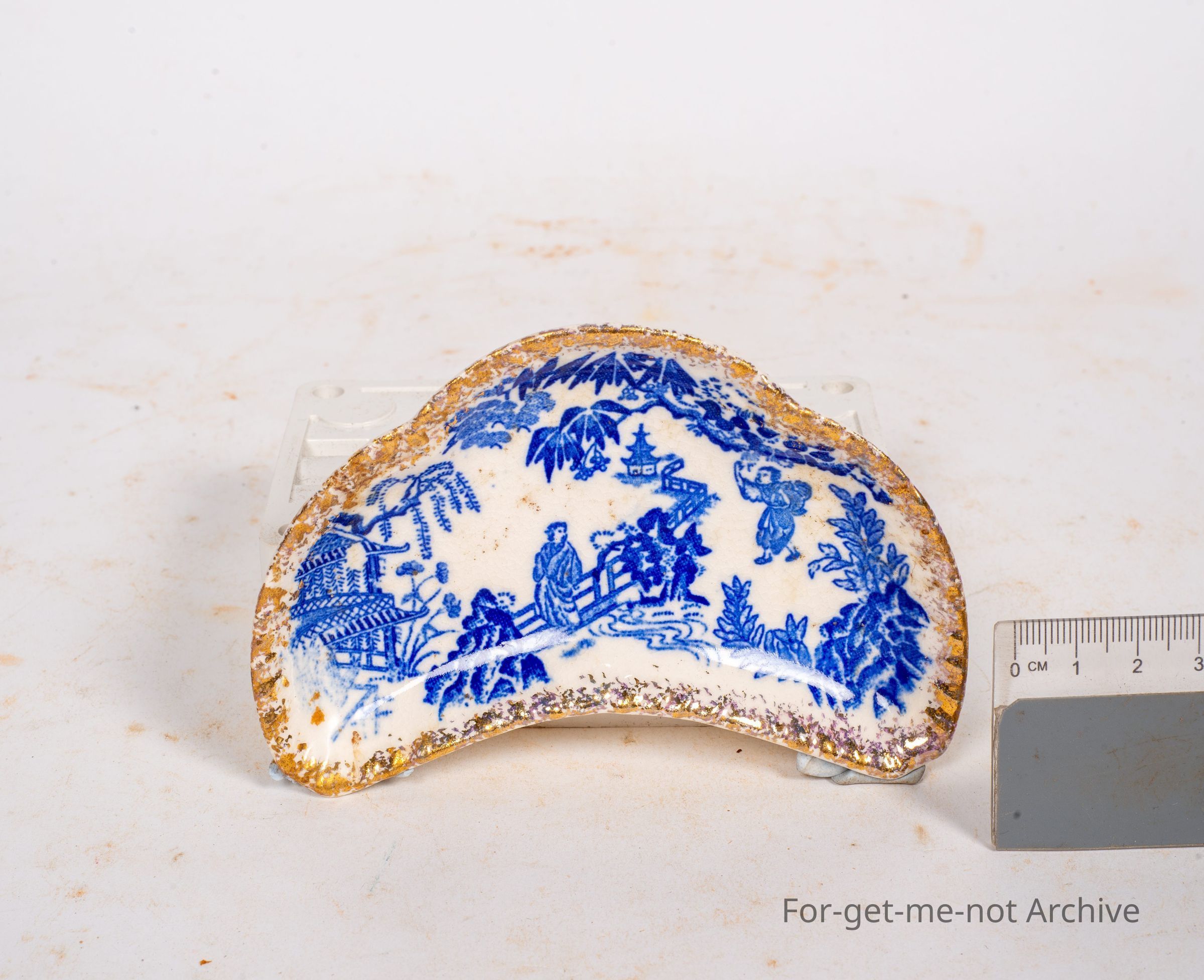 Is a small, oval or kidney shaped plate. This is probably very early Willow Wear, delightfully done, can't read the brand