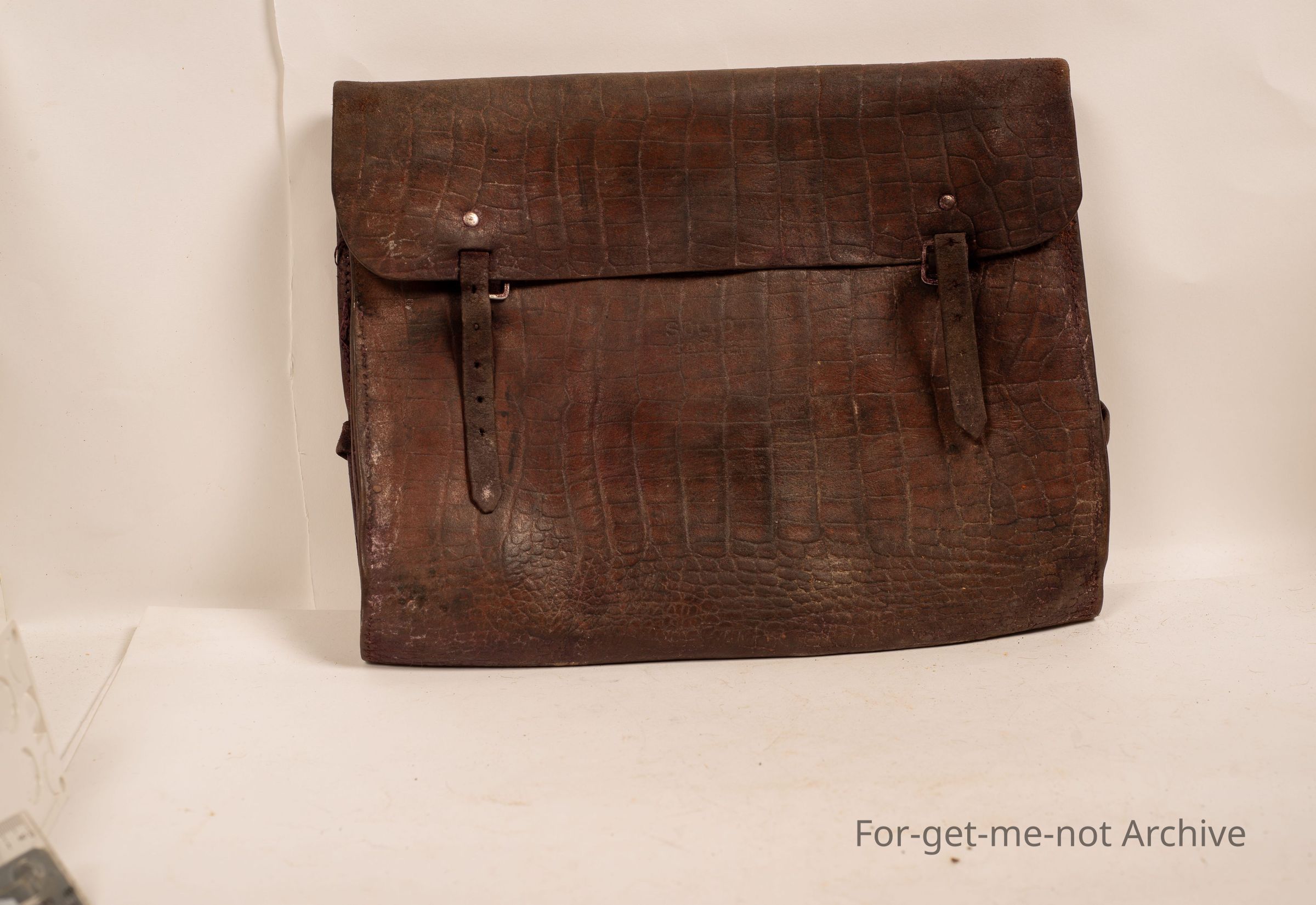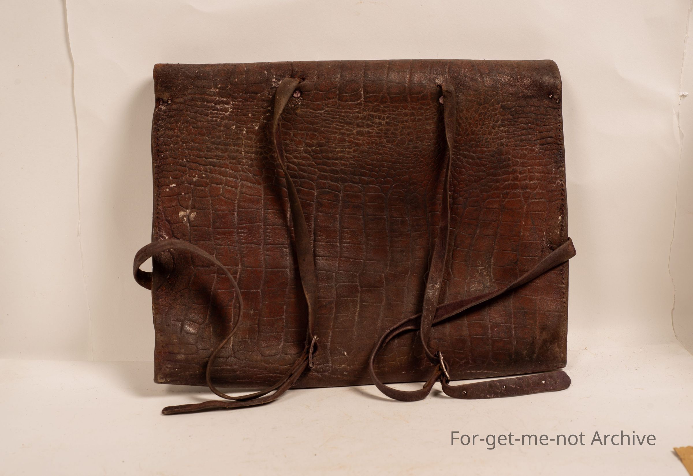 Kids leather suitcase, a school bag, in very good order. Straps and everything working. This has a alligator skin stamped, effect on it. Nice piece.
