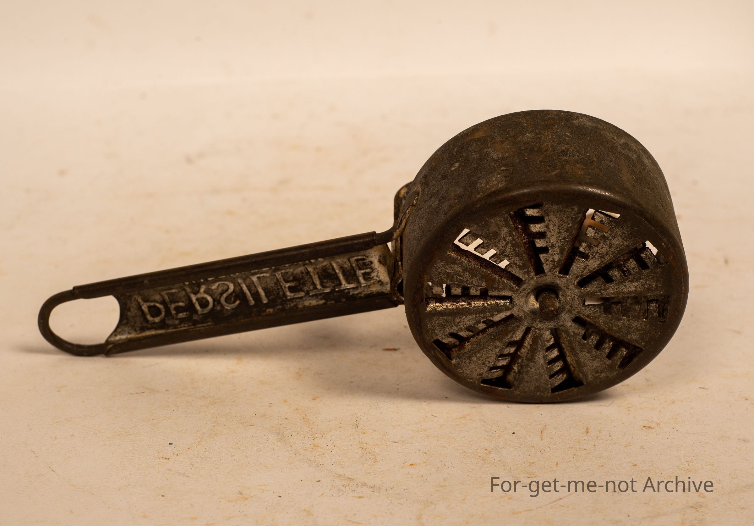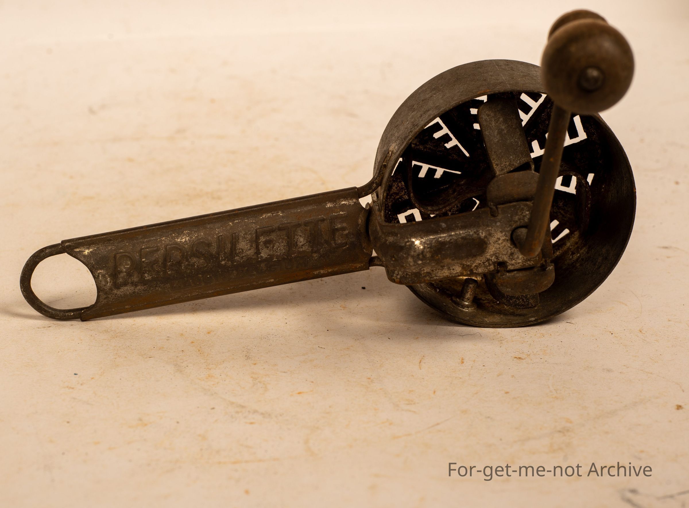 Is a hand operated tin, multipurpose grinder for the kitchen called the Persillette, made in Belgium.
