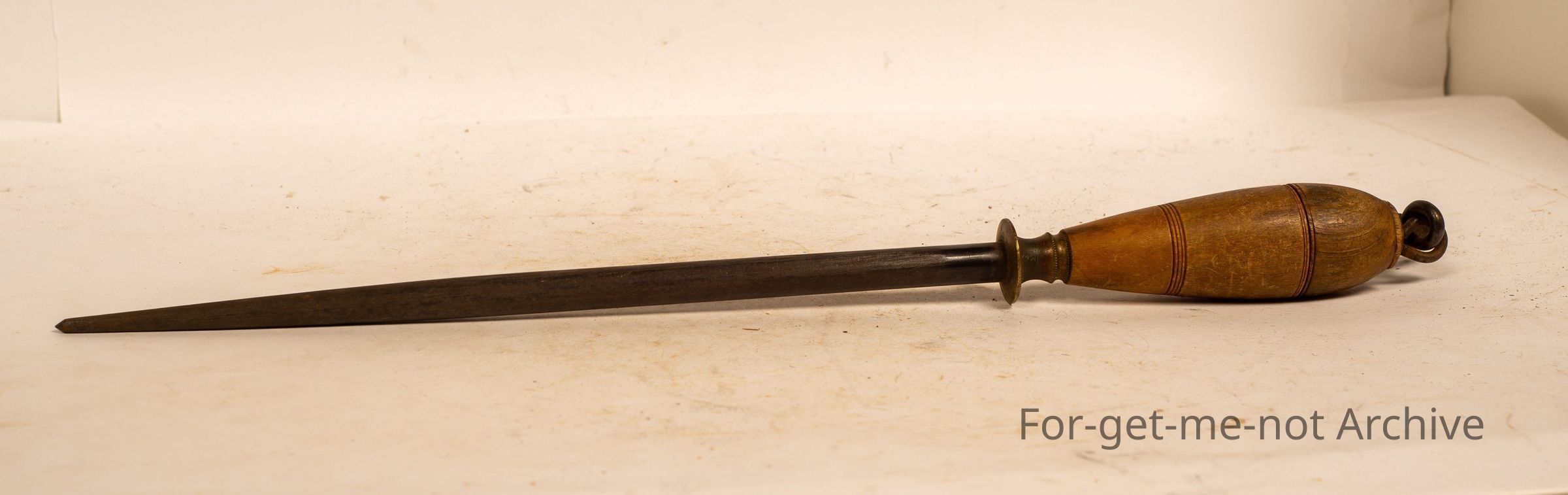 Is a kitchen steel wooden handle. The stamping is unreadable.