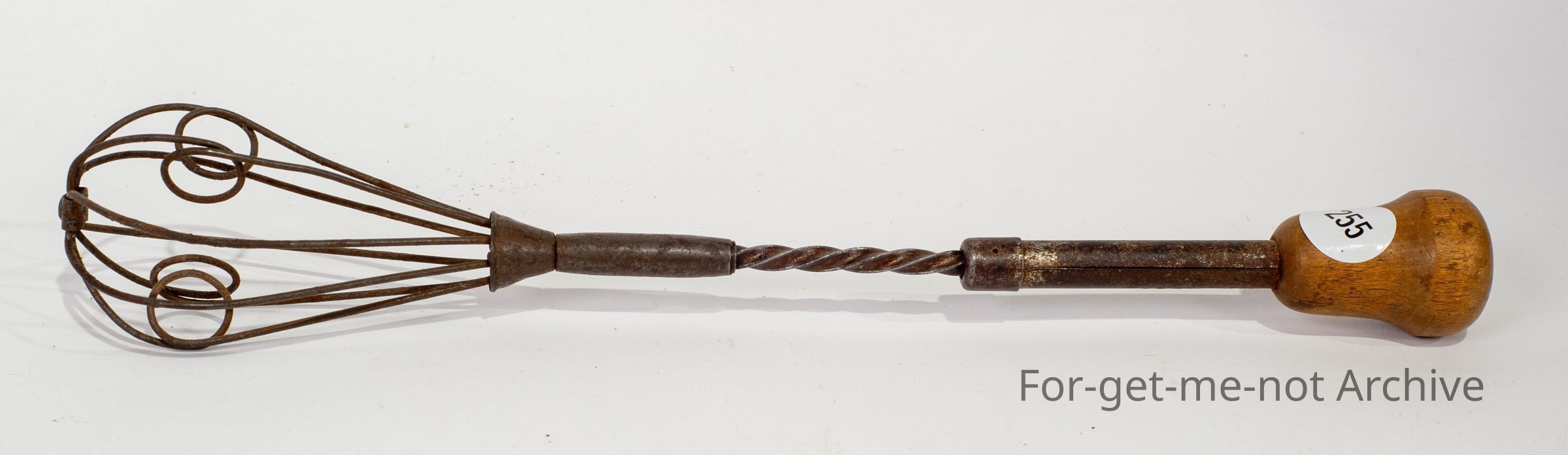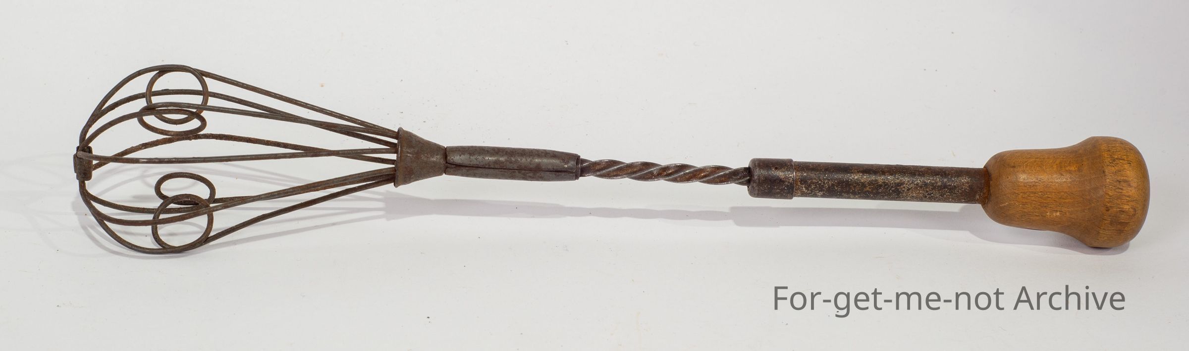 very light, Archimedes spiral, wodden handle, wire end whisk, no manufacturing name