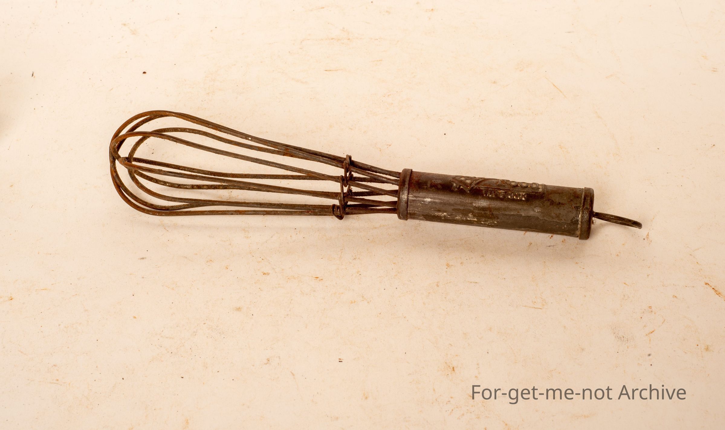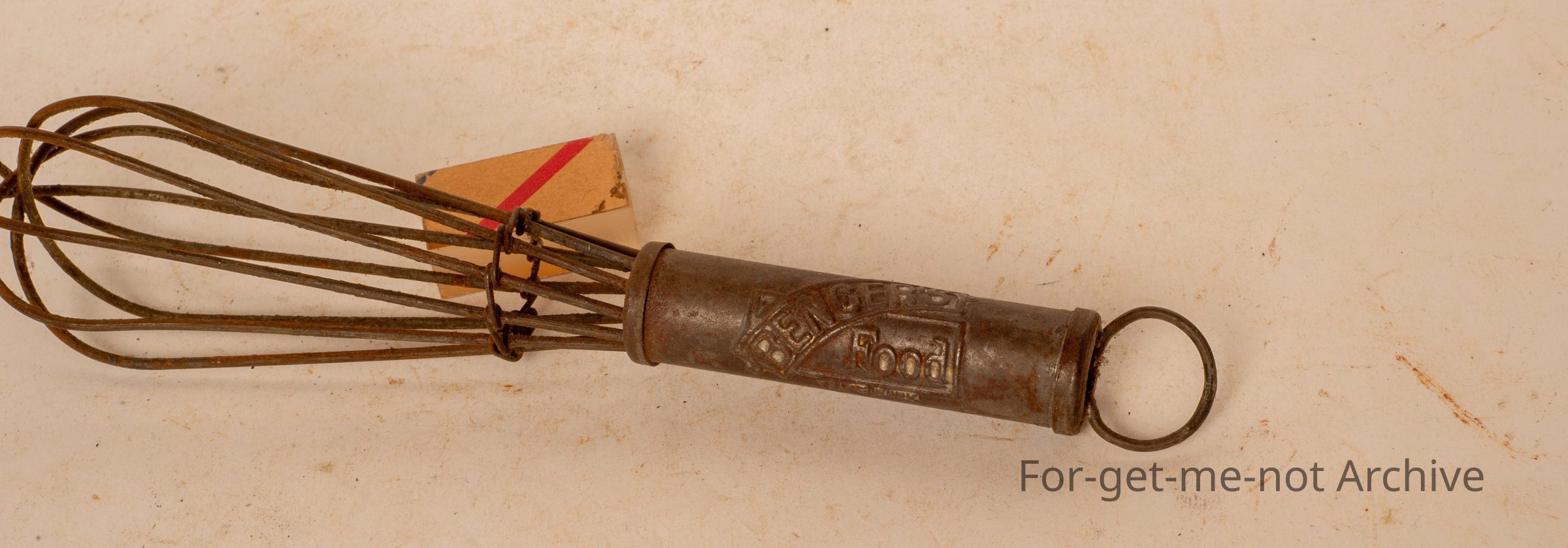 This is a little kitchen whisk, only small, tin handle. This is an advertising piece embossed into the tin is Benger's food. Lovely piece