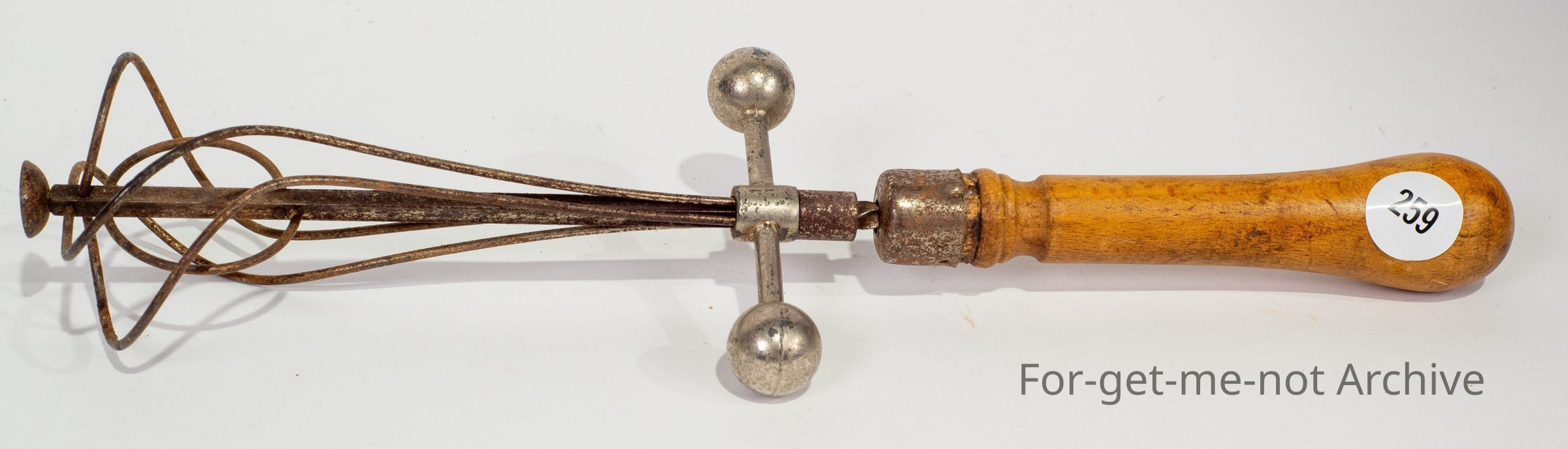 wooden handle, works on Archimedes spiral, wire base, no manufacturing details