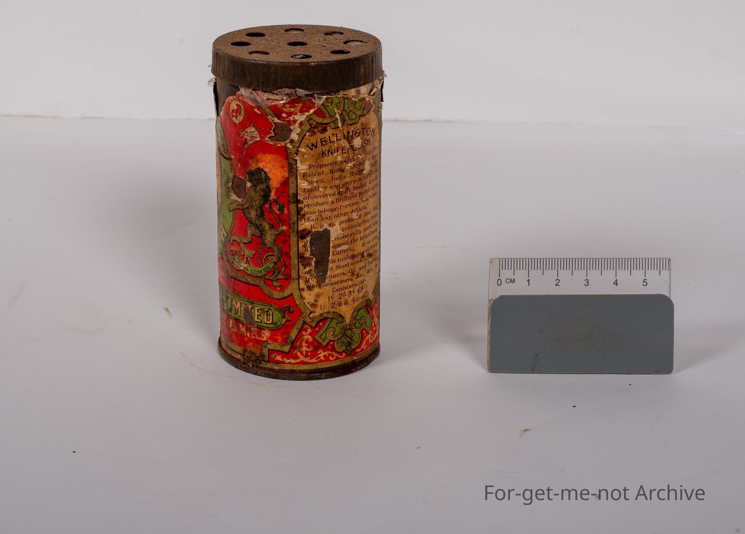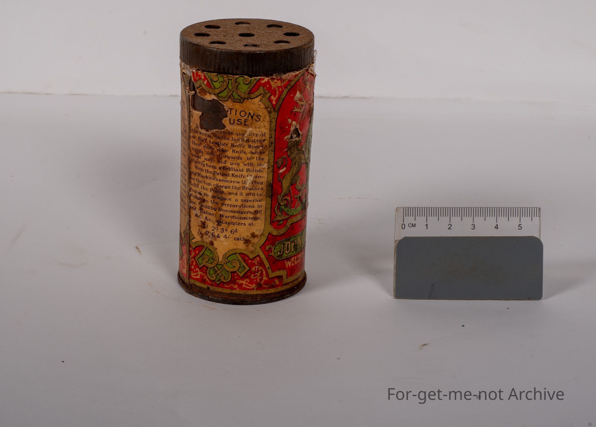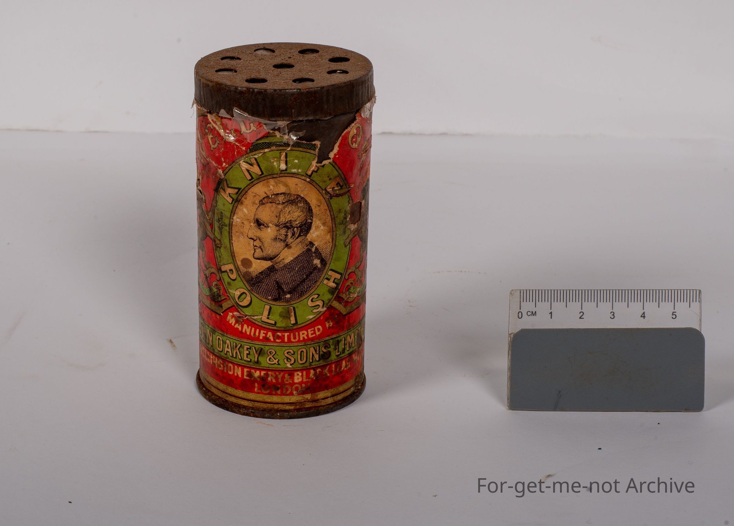 This is a tin can with a paper label of knife polish John Oakey and Sons Limited. No doubt it's a very old tin in pretty down condition, but still holding the knife polish contentsCollection