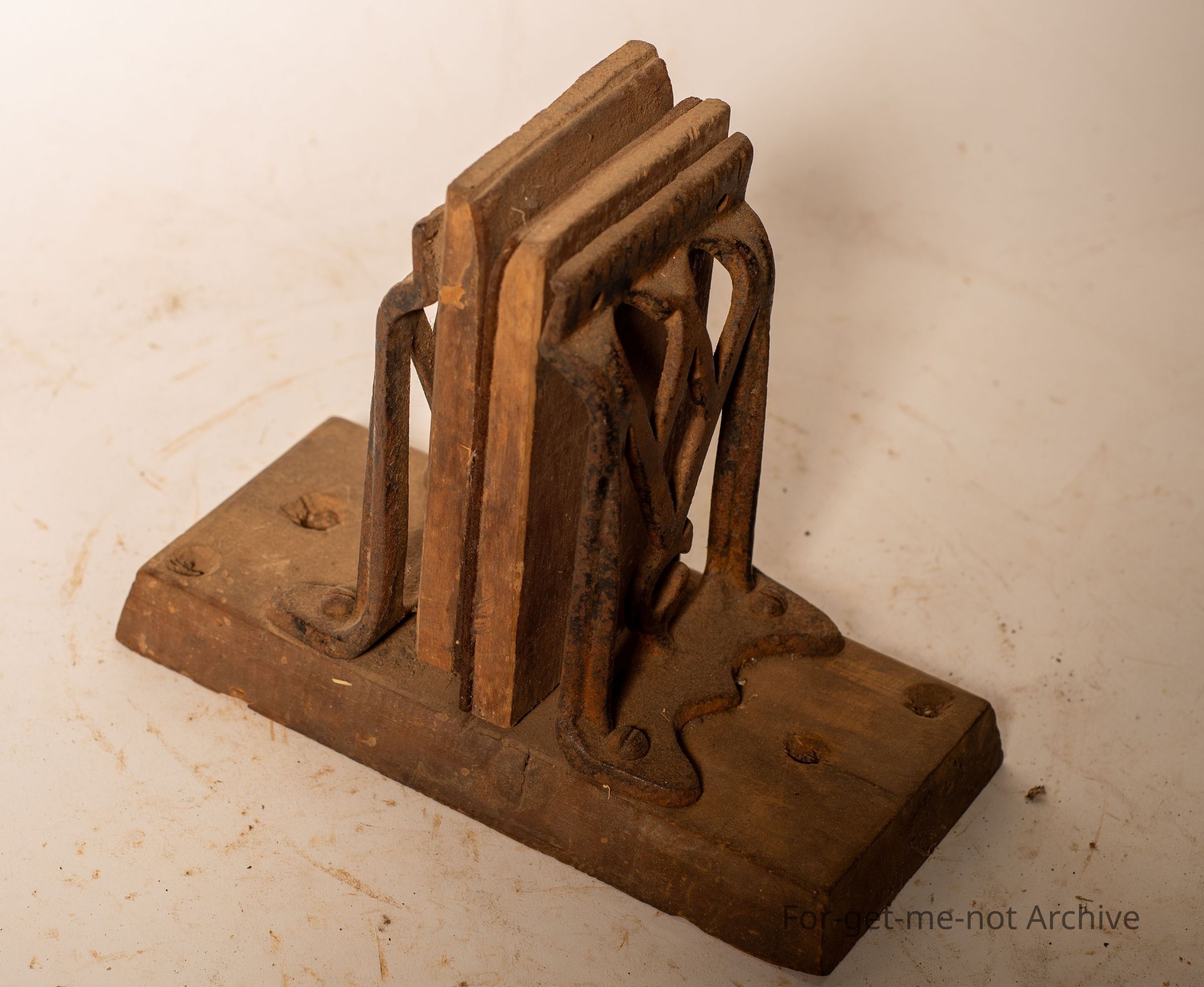 This is a knife polisher, not a sharpener. It has cast iron frame, with an abbreviation of MAC. Quite possibly English. All complete with the polishing material between 2 pieces of wood.Collection