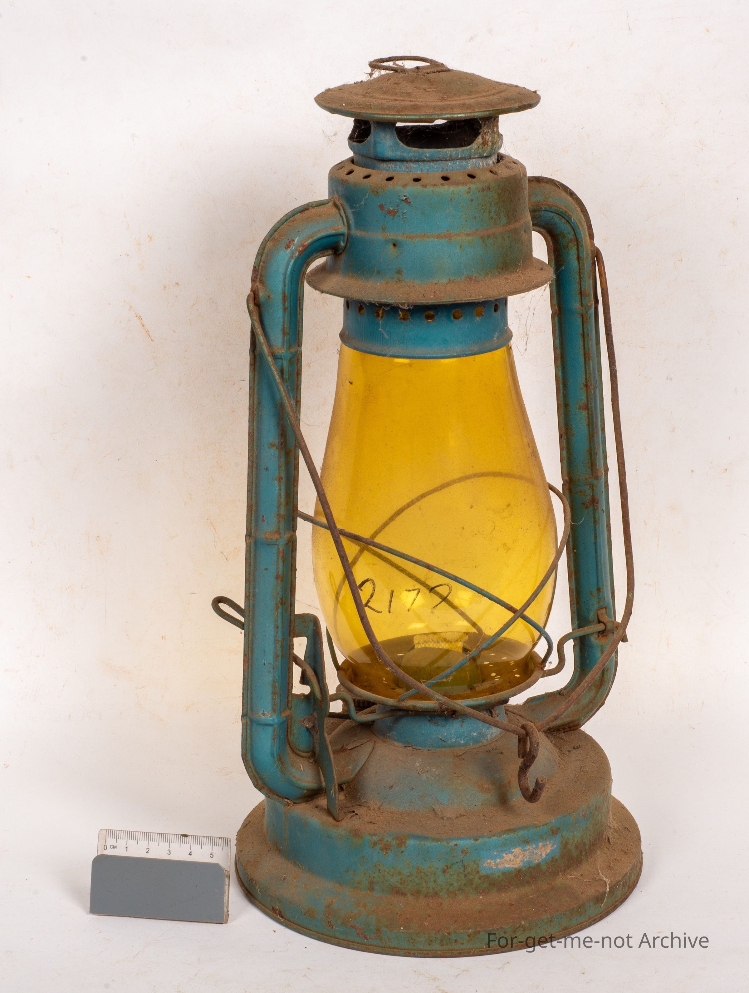 This is a pretty contemporary hurricane lamp. Unusual because it has an amber lens. Seen very little use and rather a large size.