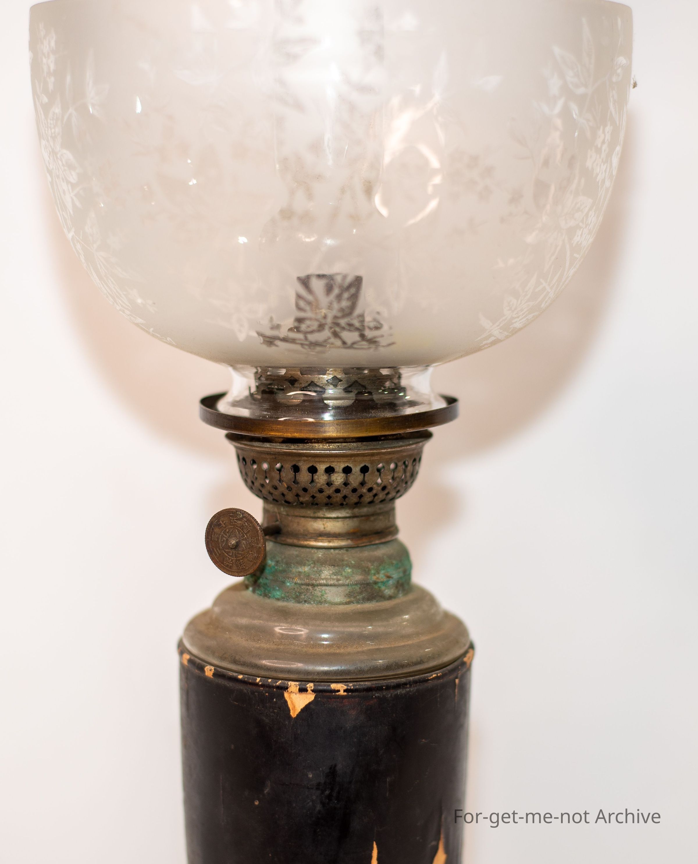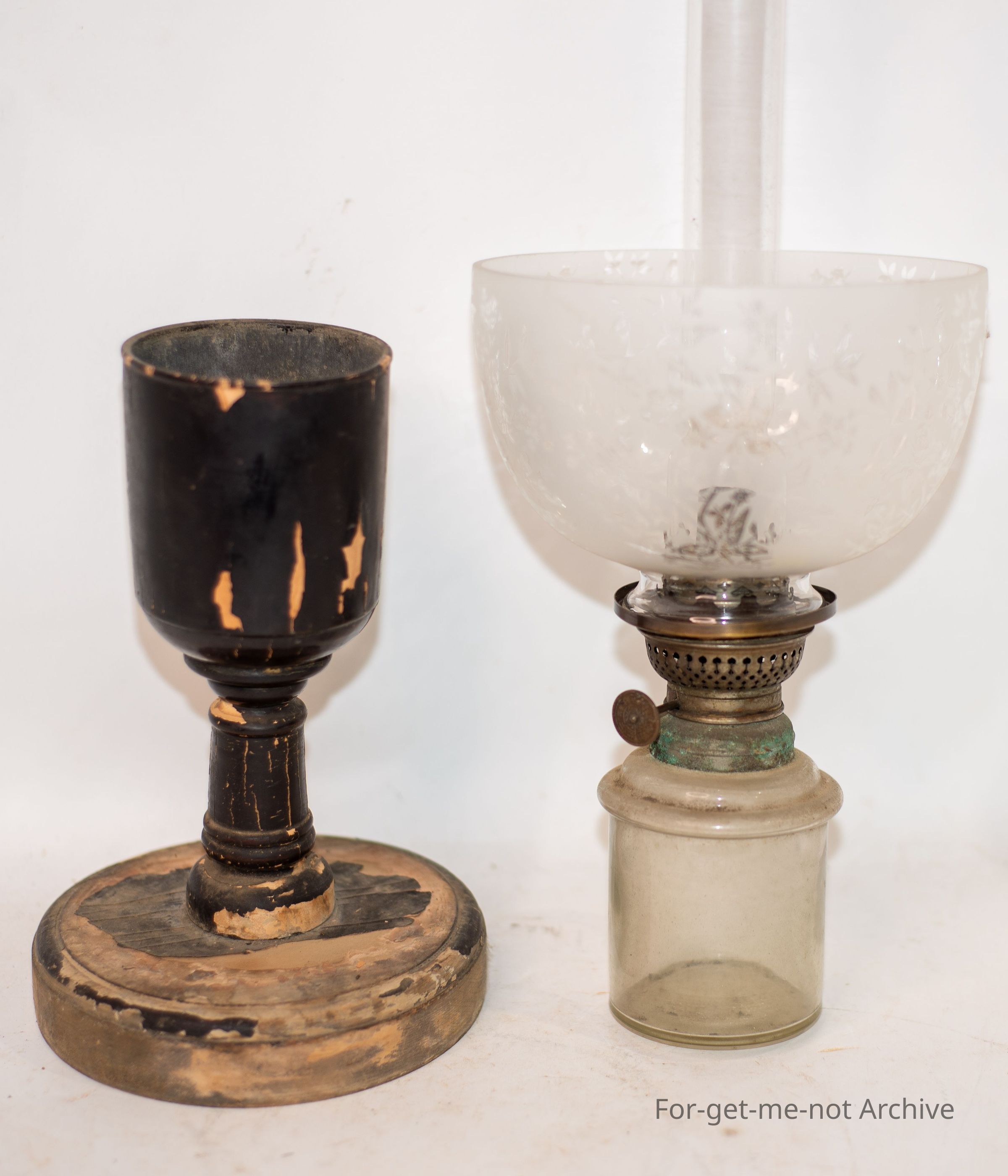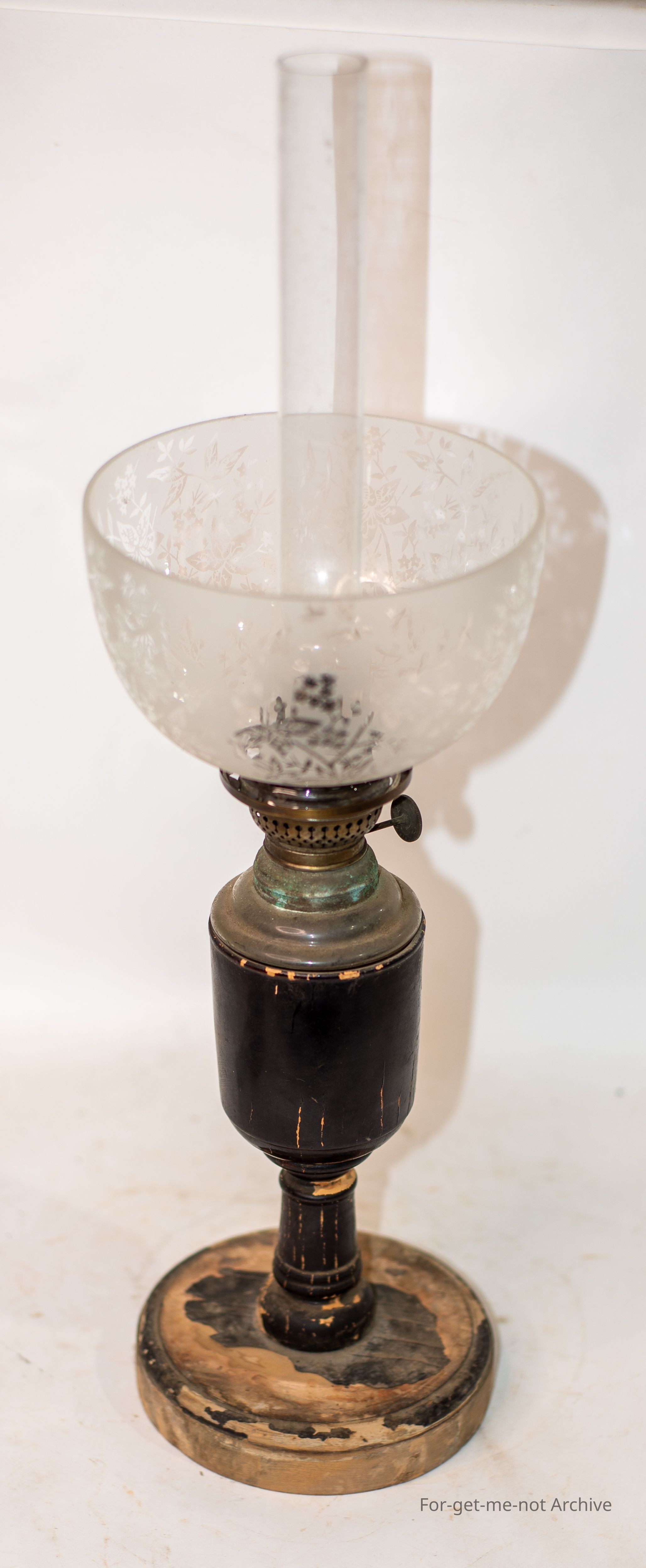 Wood oil lamp with glass tank insert purchased in Japan