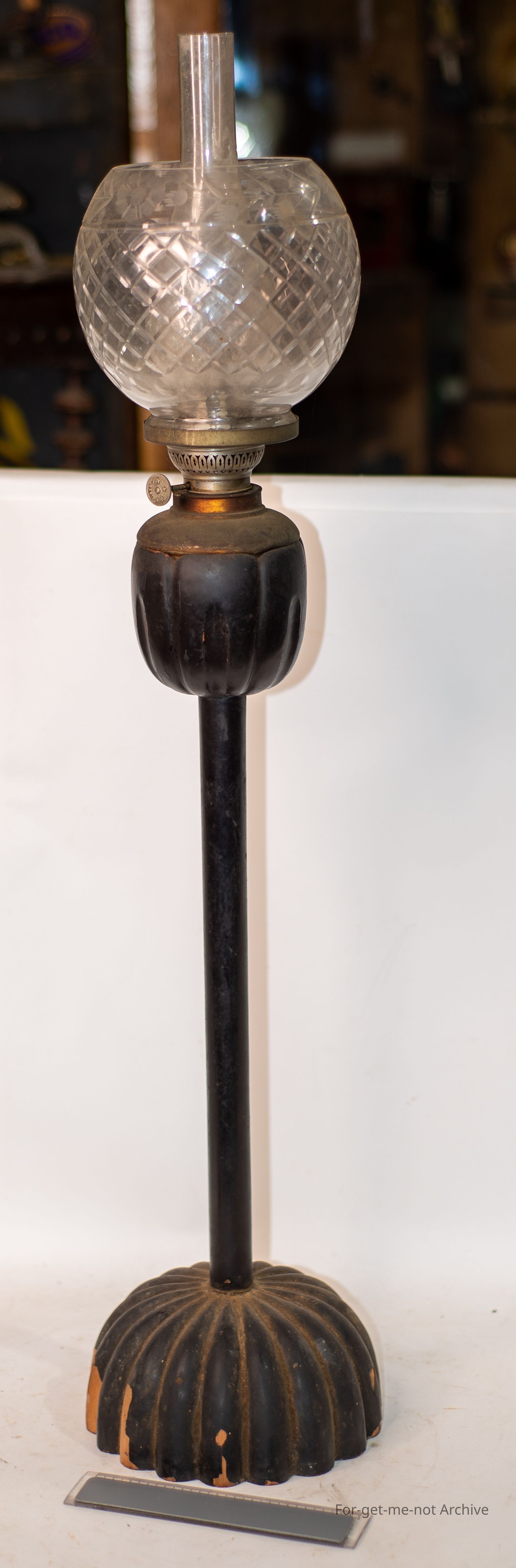 Large table lamp purchased in Japan, remnant lacquerware intact