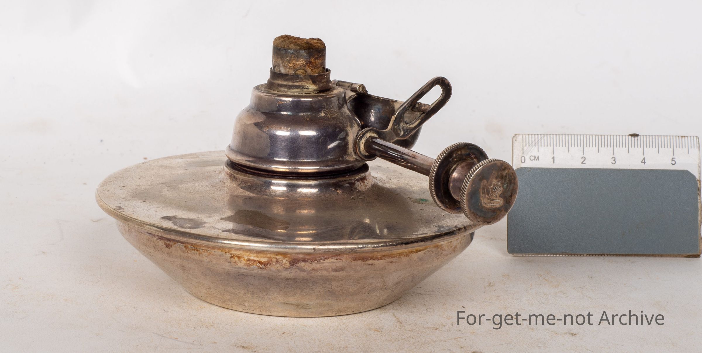 This is a very wide based font. Little lamp on the top. An automatic snuffer when you turn the handle. The rig's still attached.