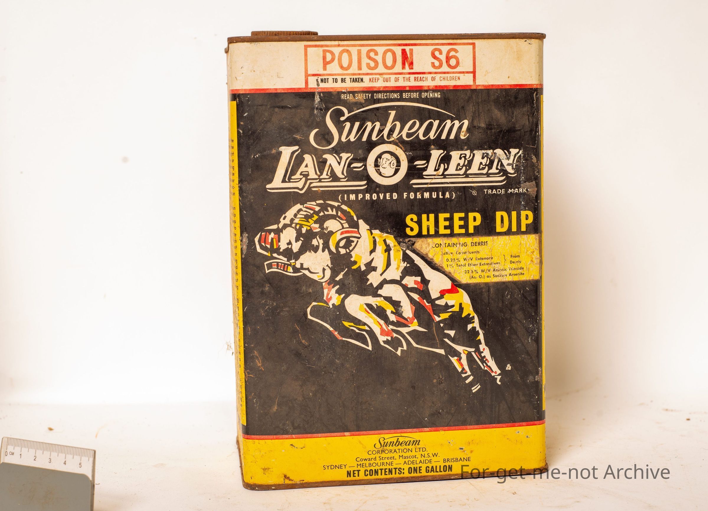 Is a 1 gallon tin of Sunbeam Lan-o-Leen Shape Dip with jumping ram image. Not in bad condition.