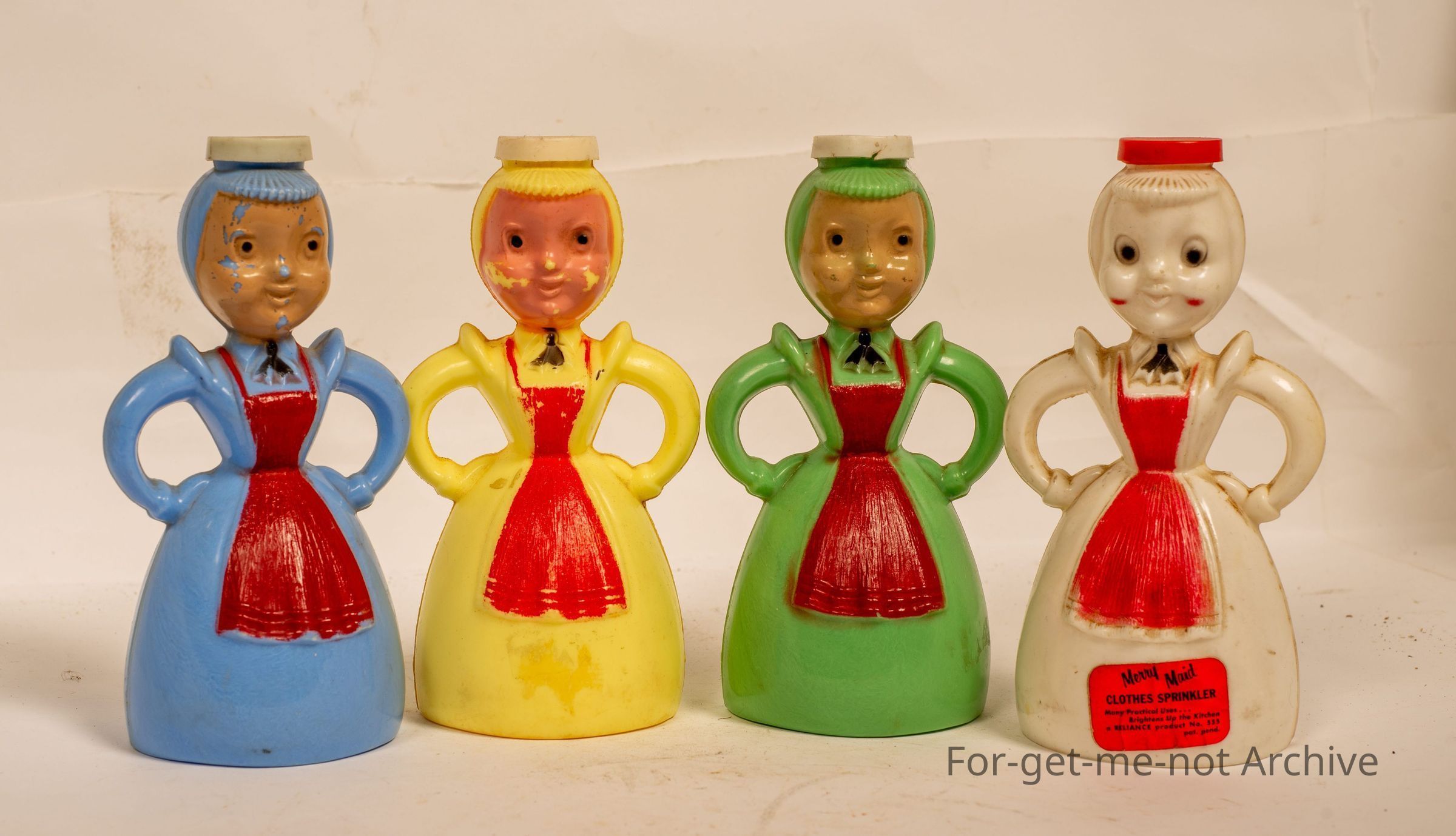 Blue, yellow , green & white used to sprinkle water on clothing prior to ironing.