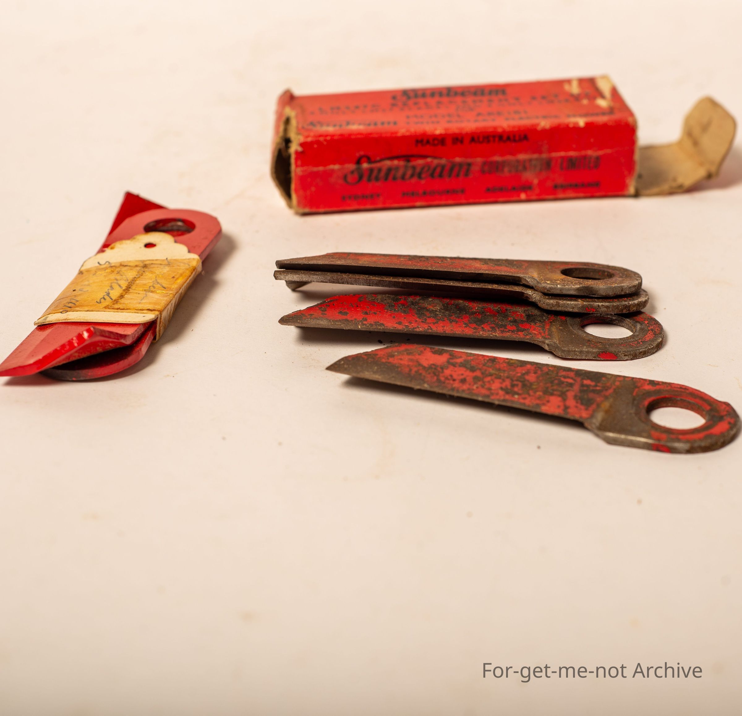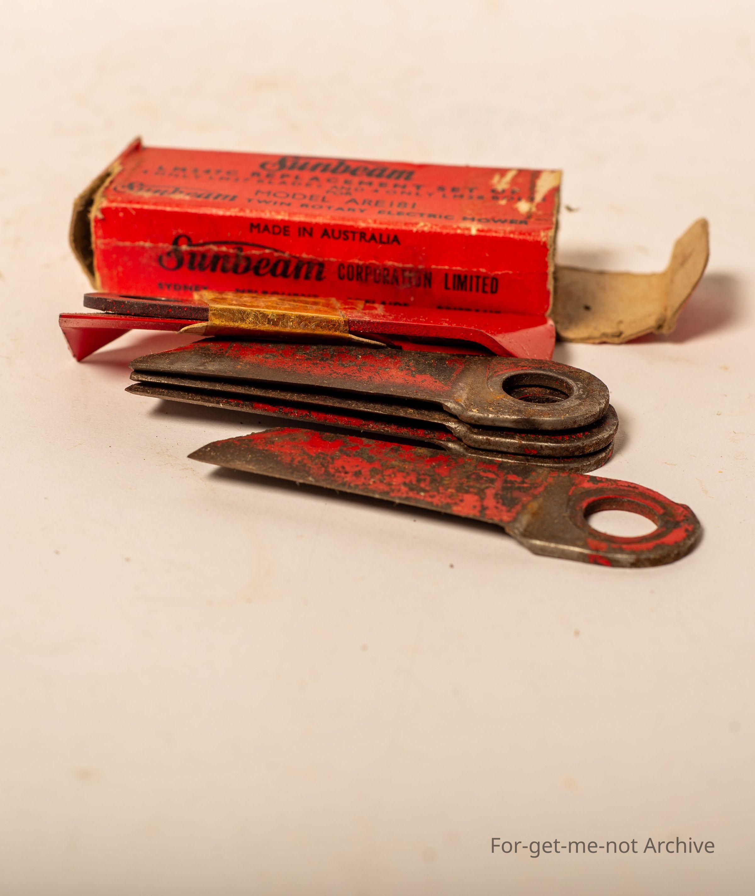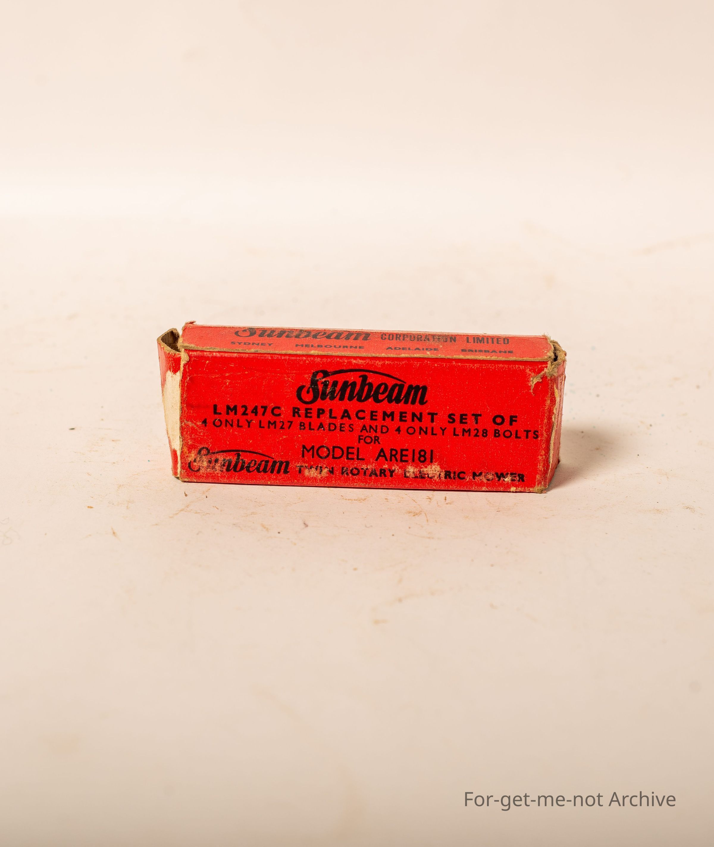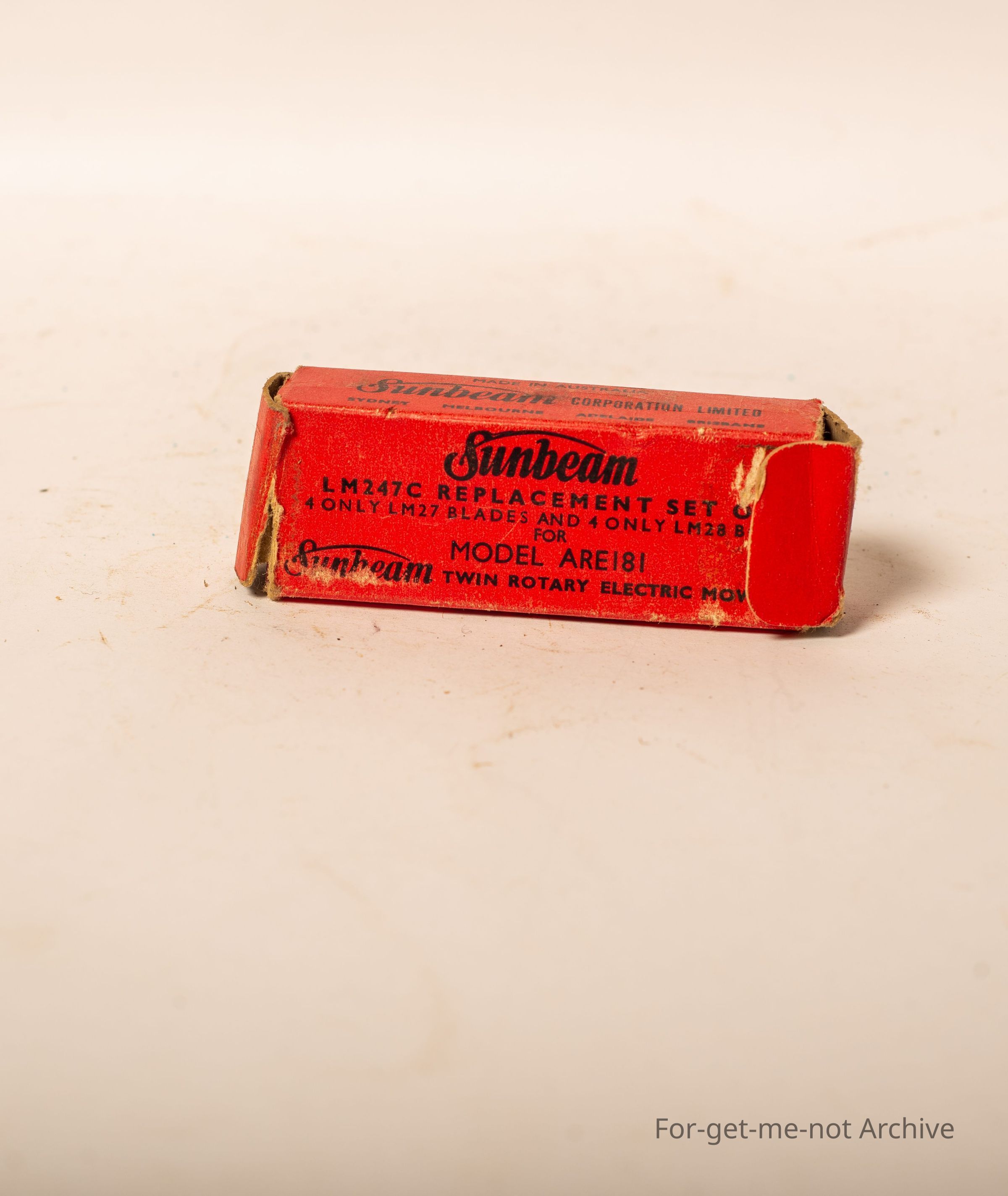 Cardboard Box from Sunbeam, replacement set of blades for model ARE 181, this is for a Twin rotary electric lawn mower.