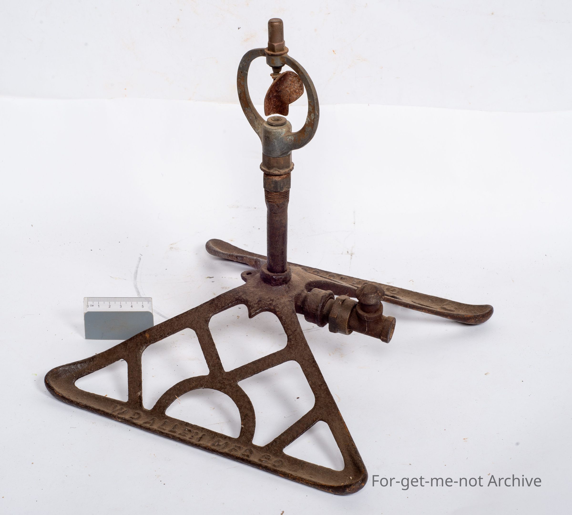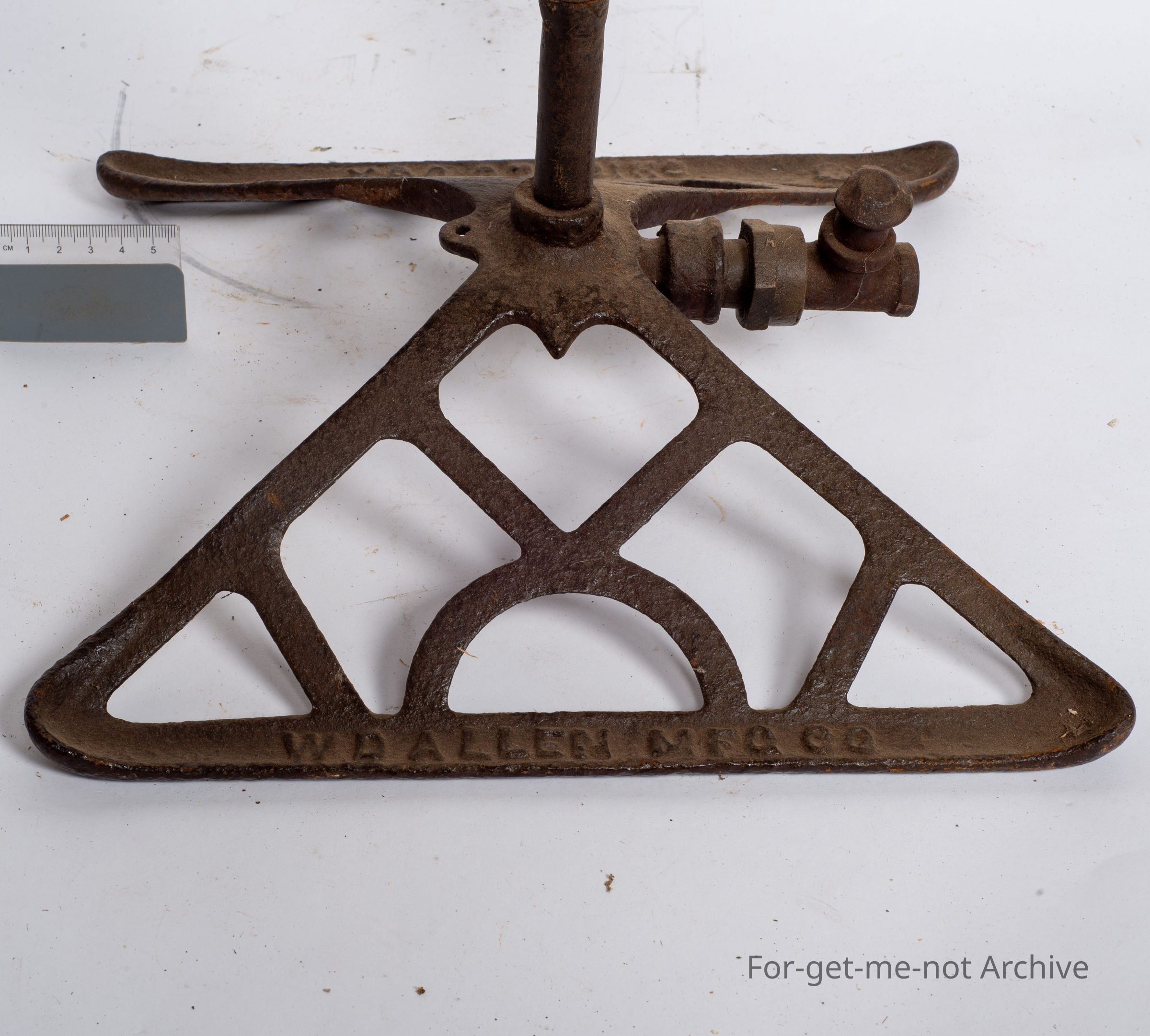 This is a cast iron, lawn sprinkler made in Chicago, USA by WD Allen Manufacturing. Quite an ornate one, a very extensive, base, would never tip over, and, quite a nice piece of a very early lawn sprinklerCollection
