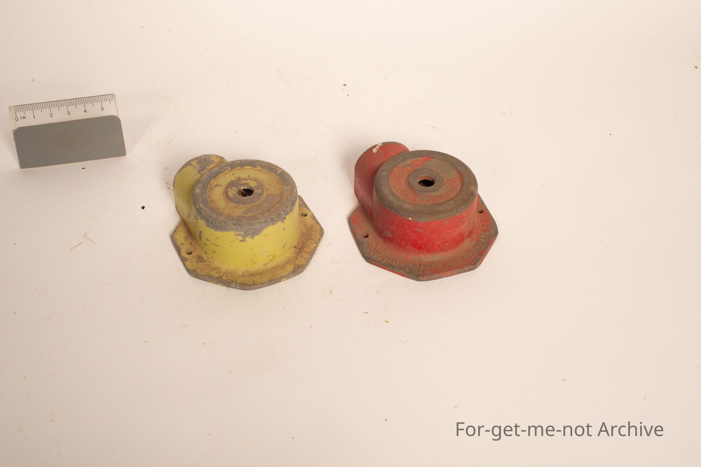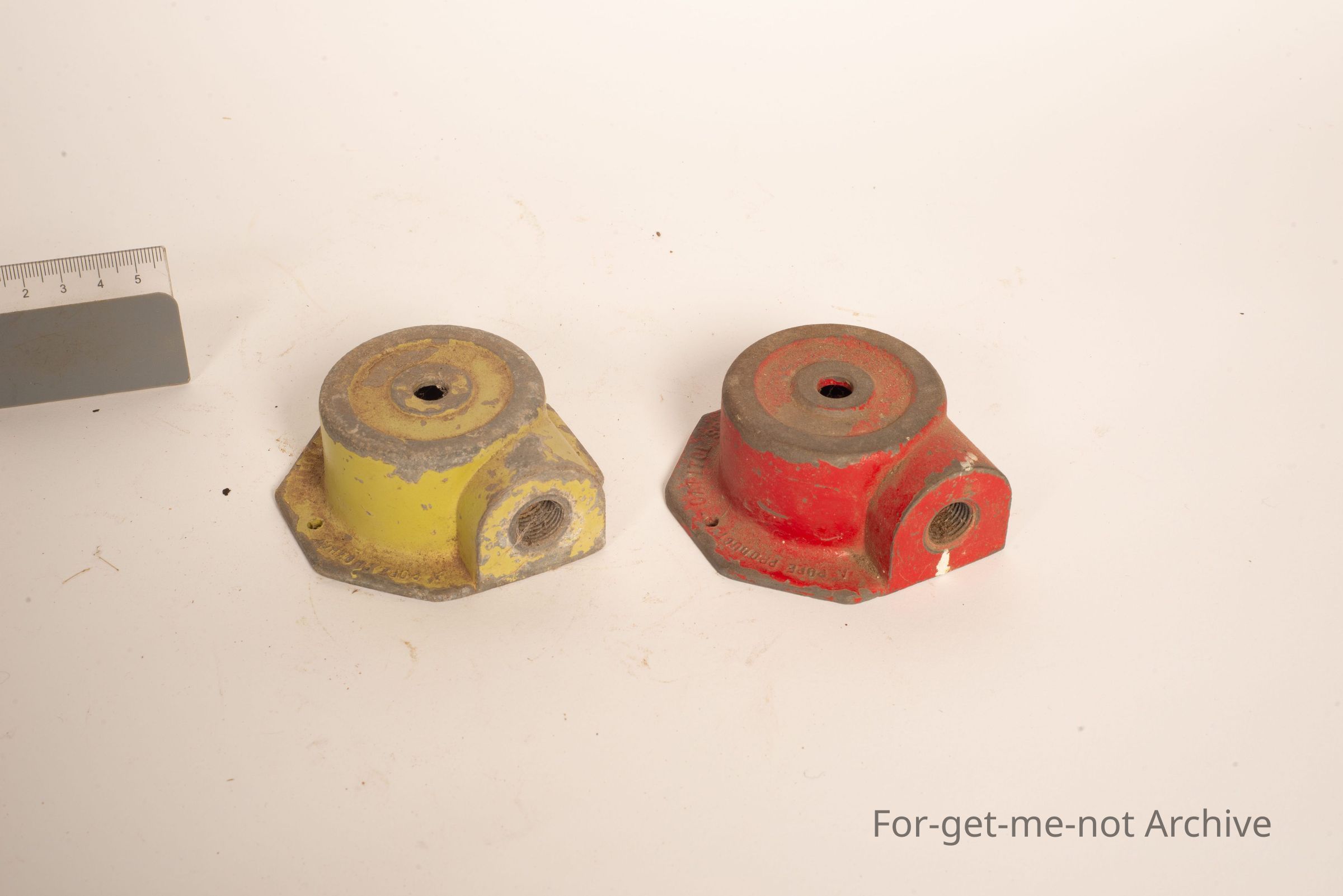 2 cast lawn sprinklers made by the Pope Company. One green, one red. Otherwise, identical