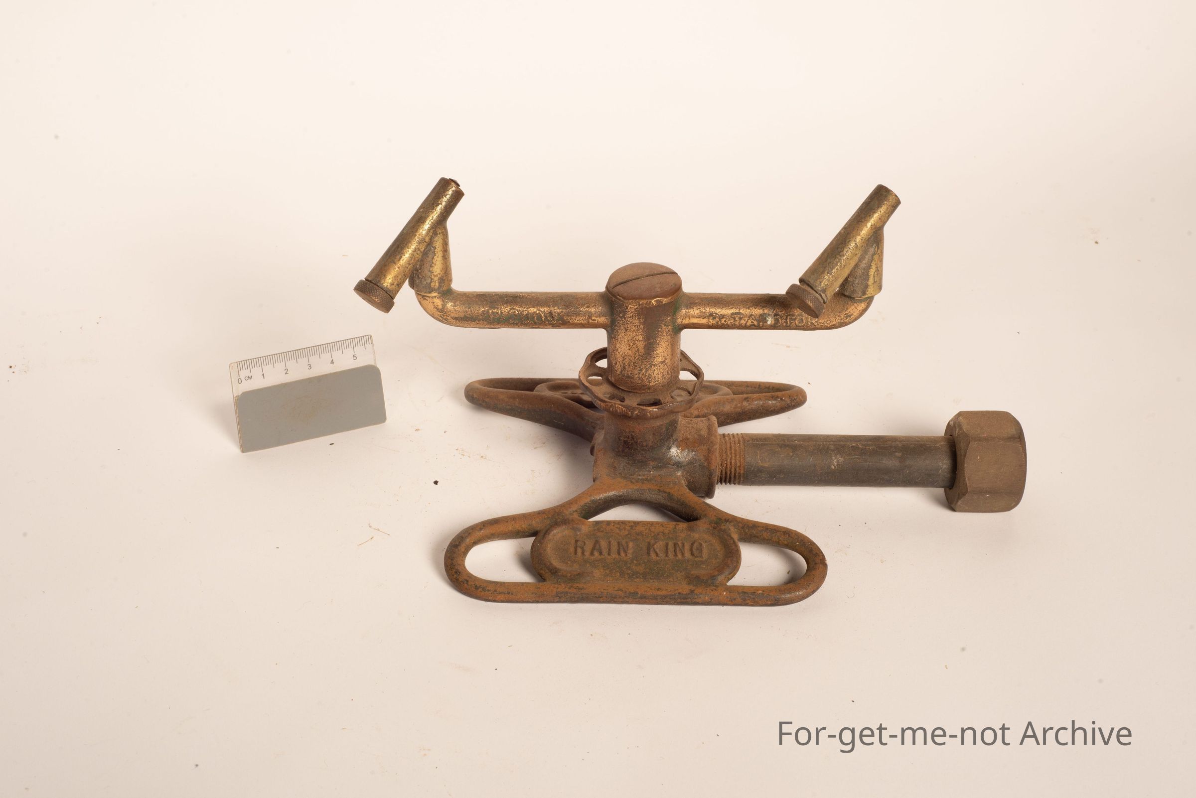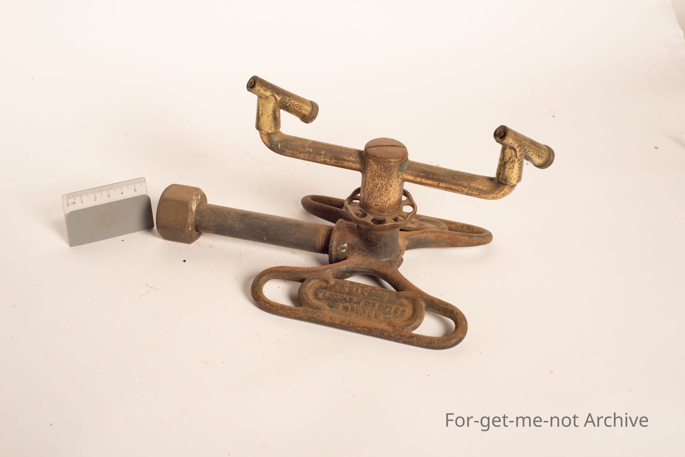 This is a cast, lawn sprinkler stamped Chicago Flexible Shaft Company, Chicago. This one is known as the Reign King. All complete. Reasonably hard to find them together.Collection