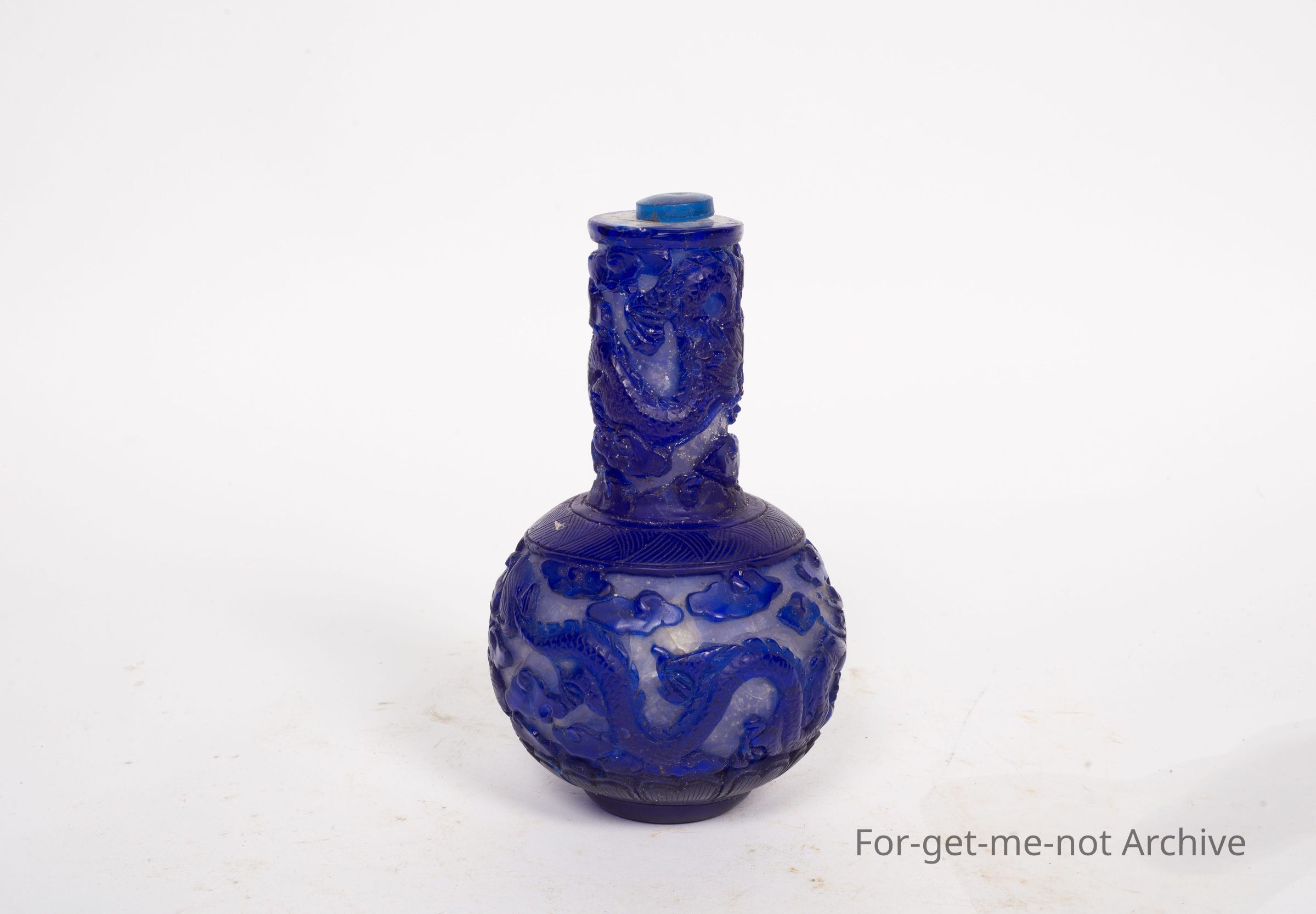 Is a very significant piece in regard to Chinese history. This is, one of the very early layered glass, in the shape of a jar. It has intricate images of dragons all the way around and up the neck. This jar has been dated at 1500 years old and, an extreme rarity.Collection