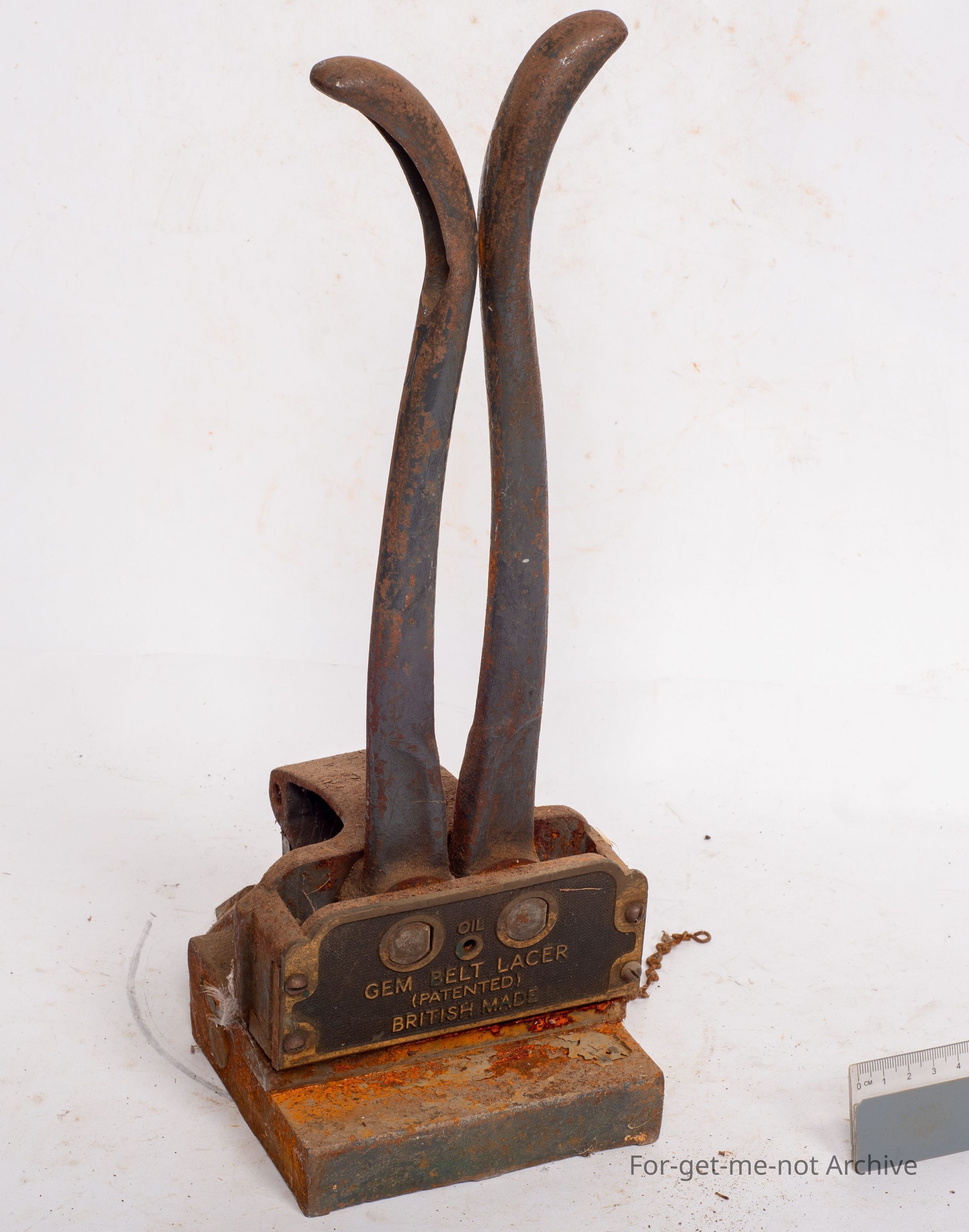 This is a cast iron instrument for applying joiners to leather belting.