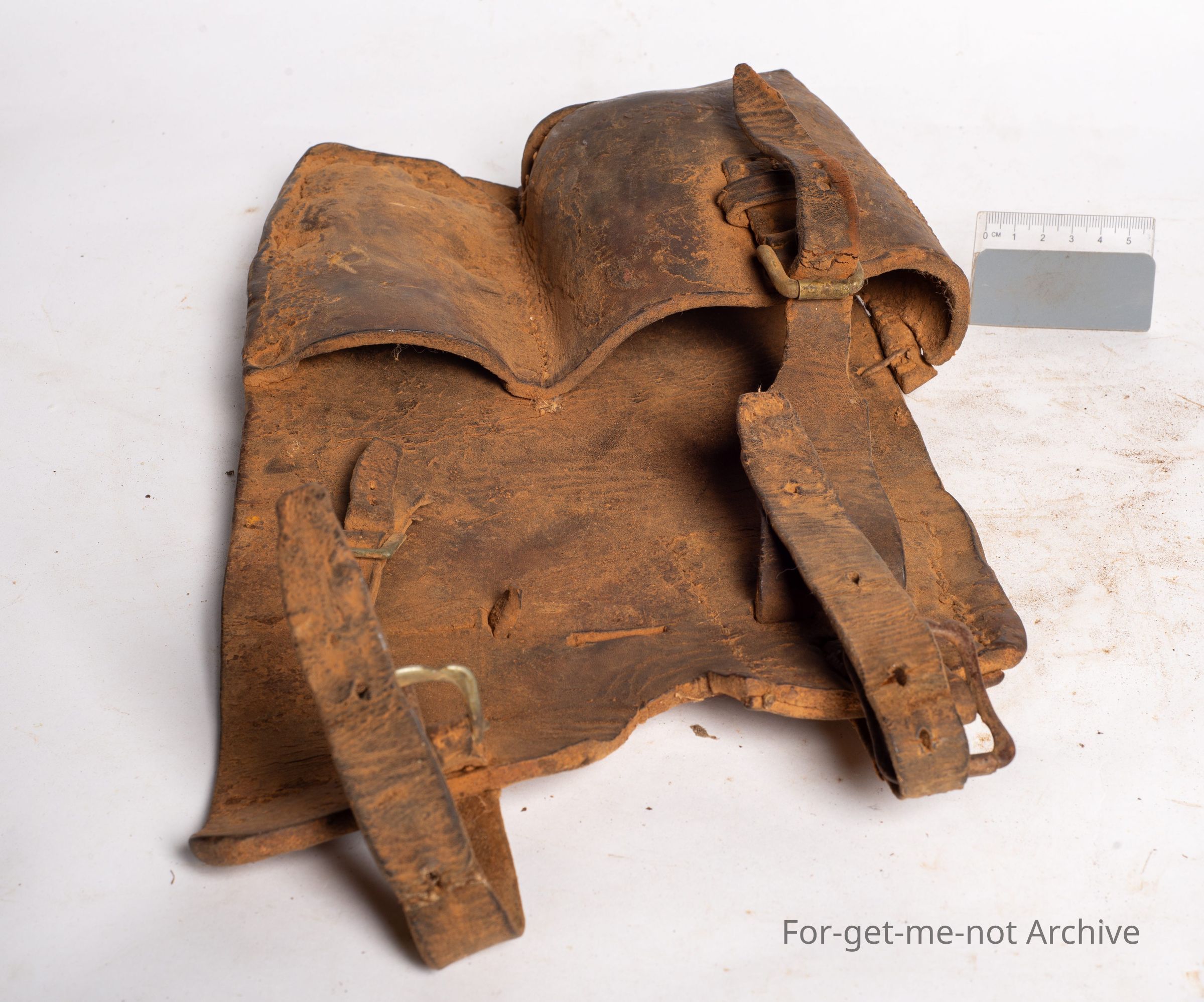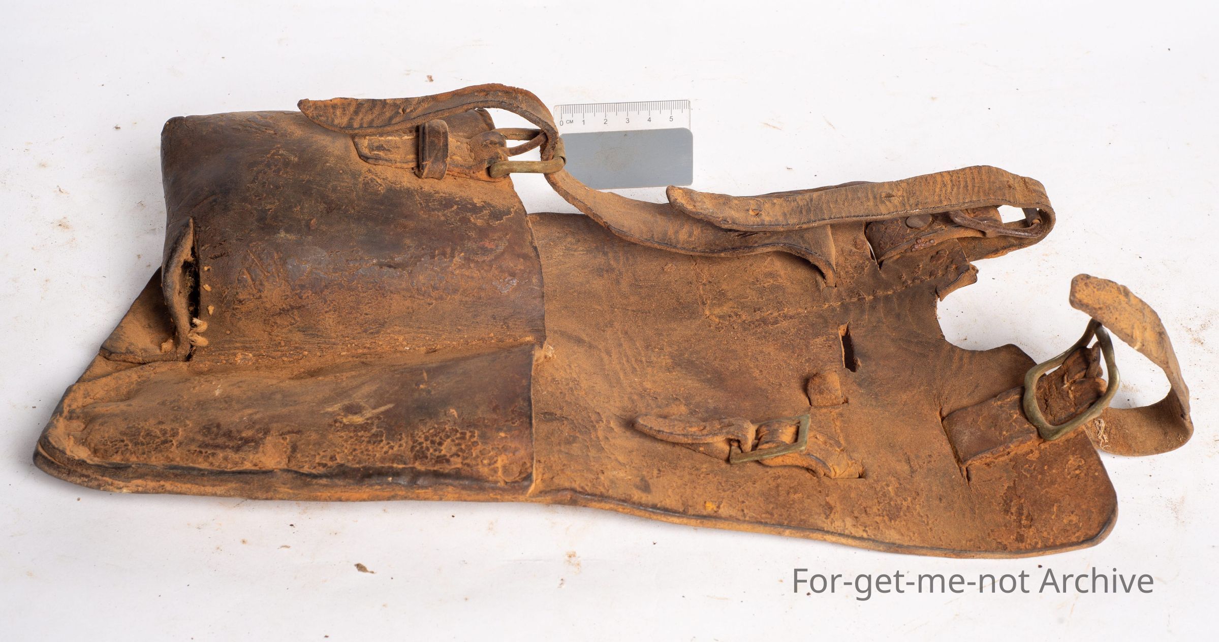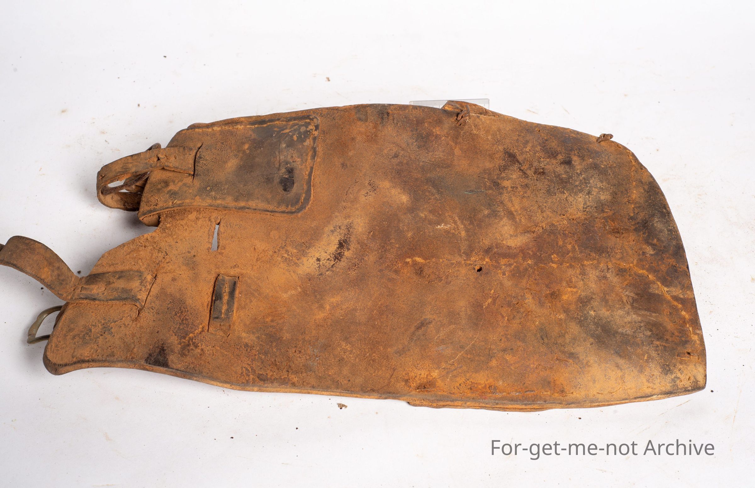 Leather, device for holding hand shears and fly oil, it hooks onto the side of a saddle. Quite heavy, solid, thick leather. Been patched up a few times. Lots of use. Very practicalCollection