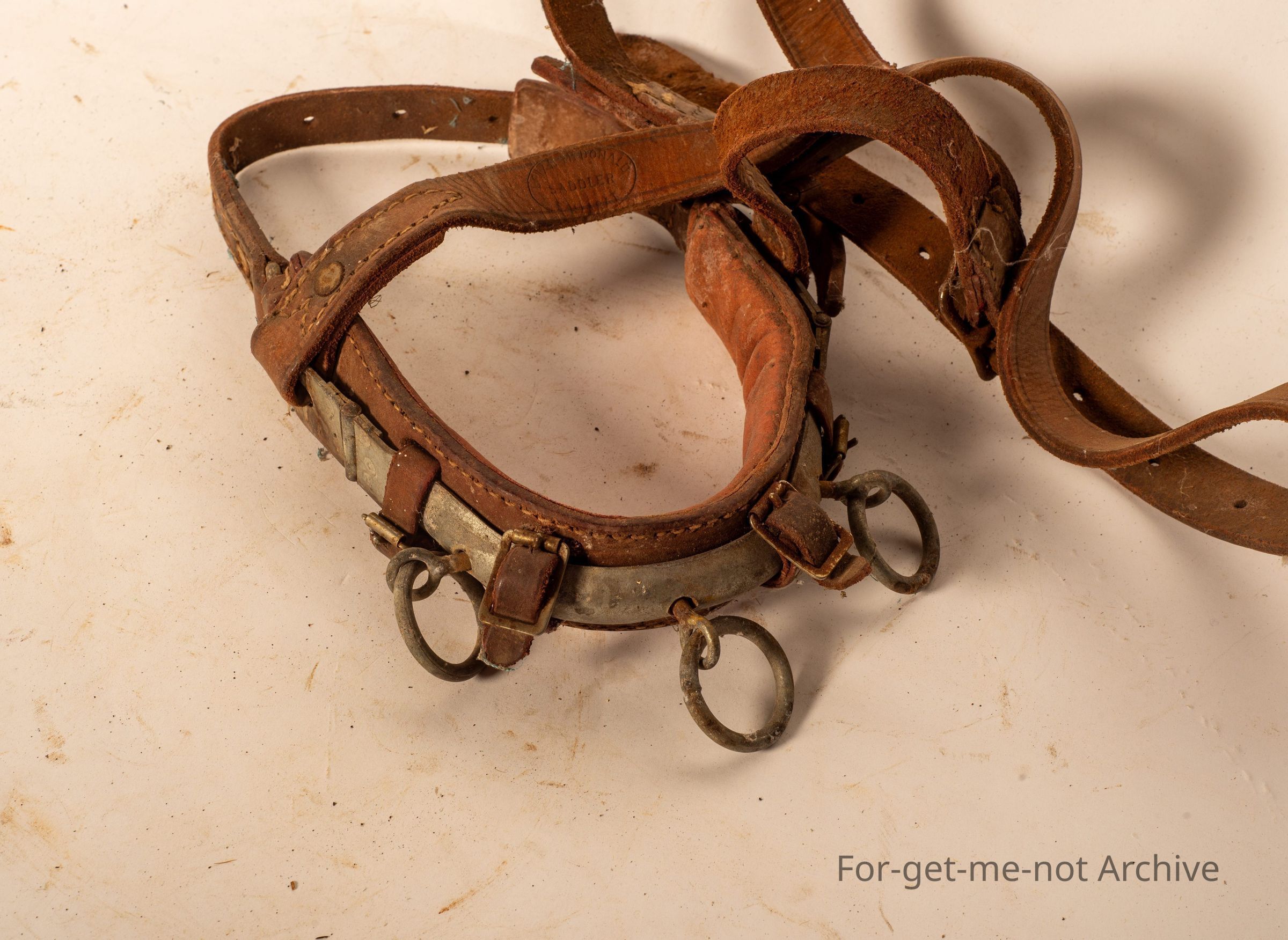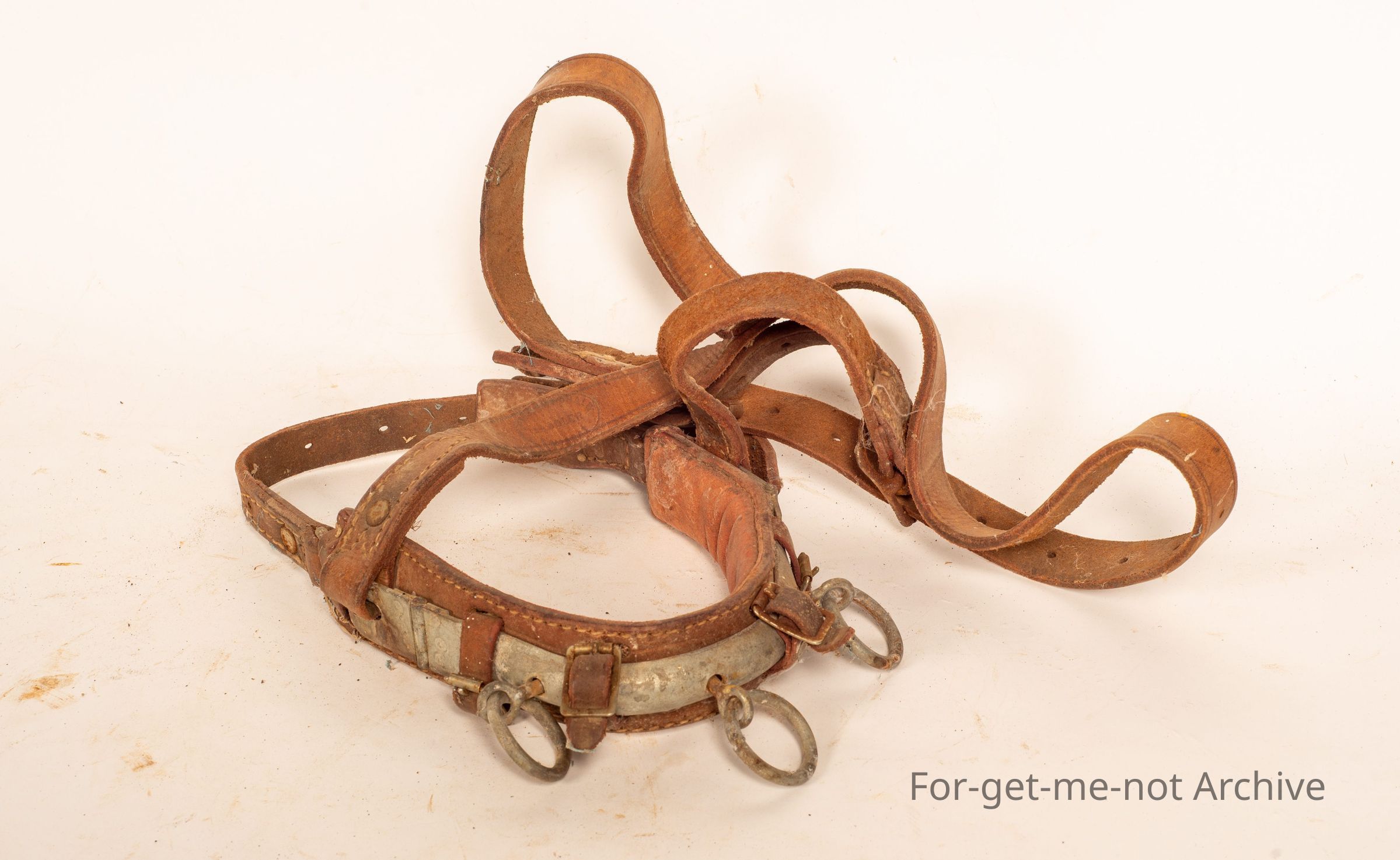 This is a leather horses halter. Quite a complex design, 3 little hanging loops from the front band