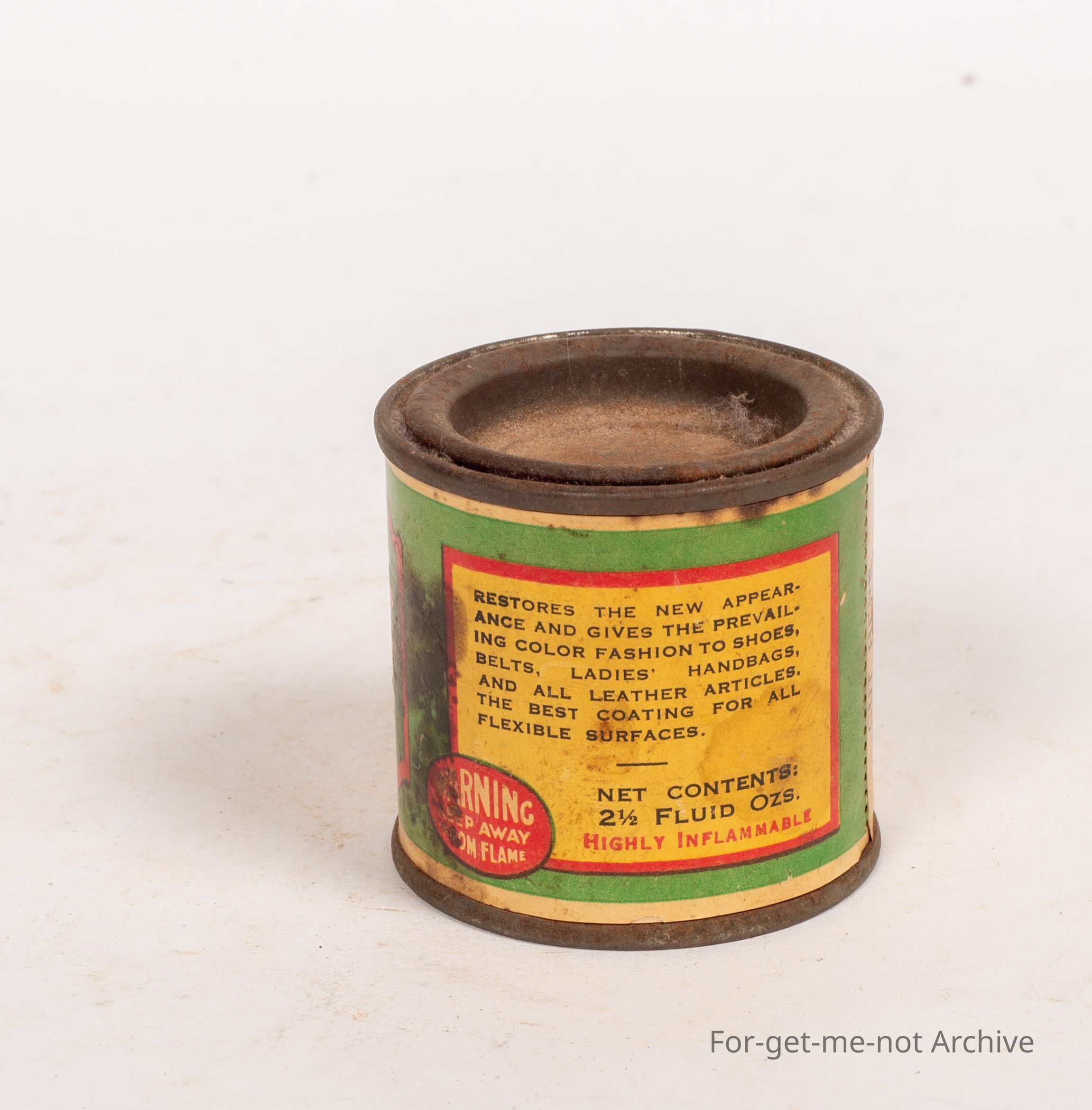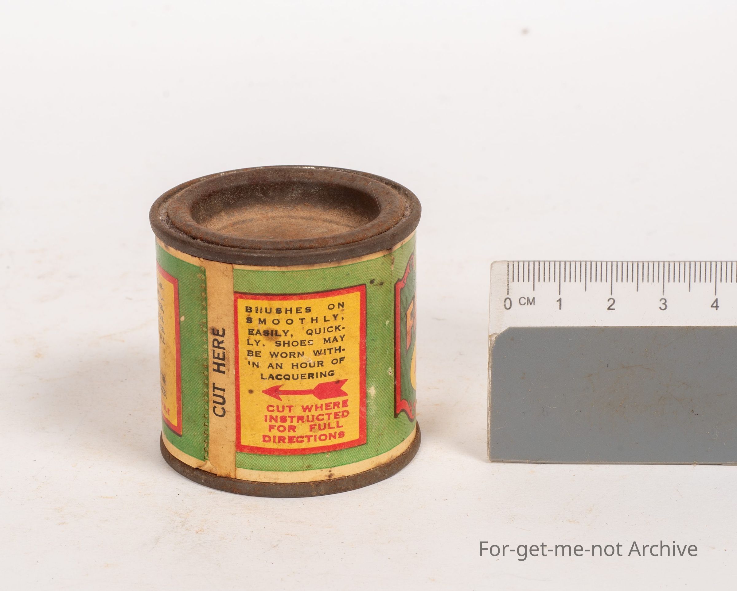 A tin of leather lacquer, Taubman's Fascinac shoe and leather lacquer, chewed brown, paper labelled, 2 and a half ounces, probably a pretty rare tin, an interesting Australian one at that.Collection