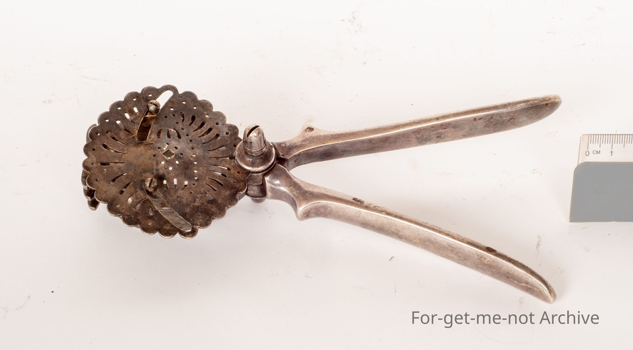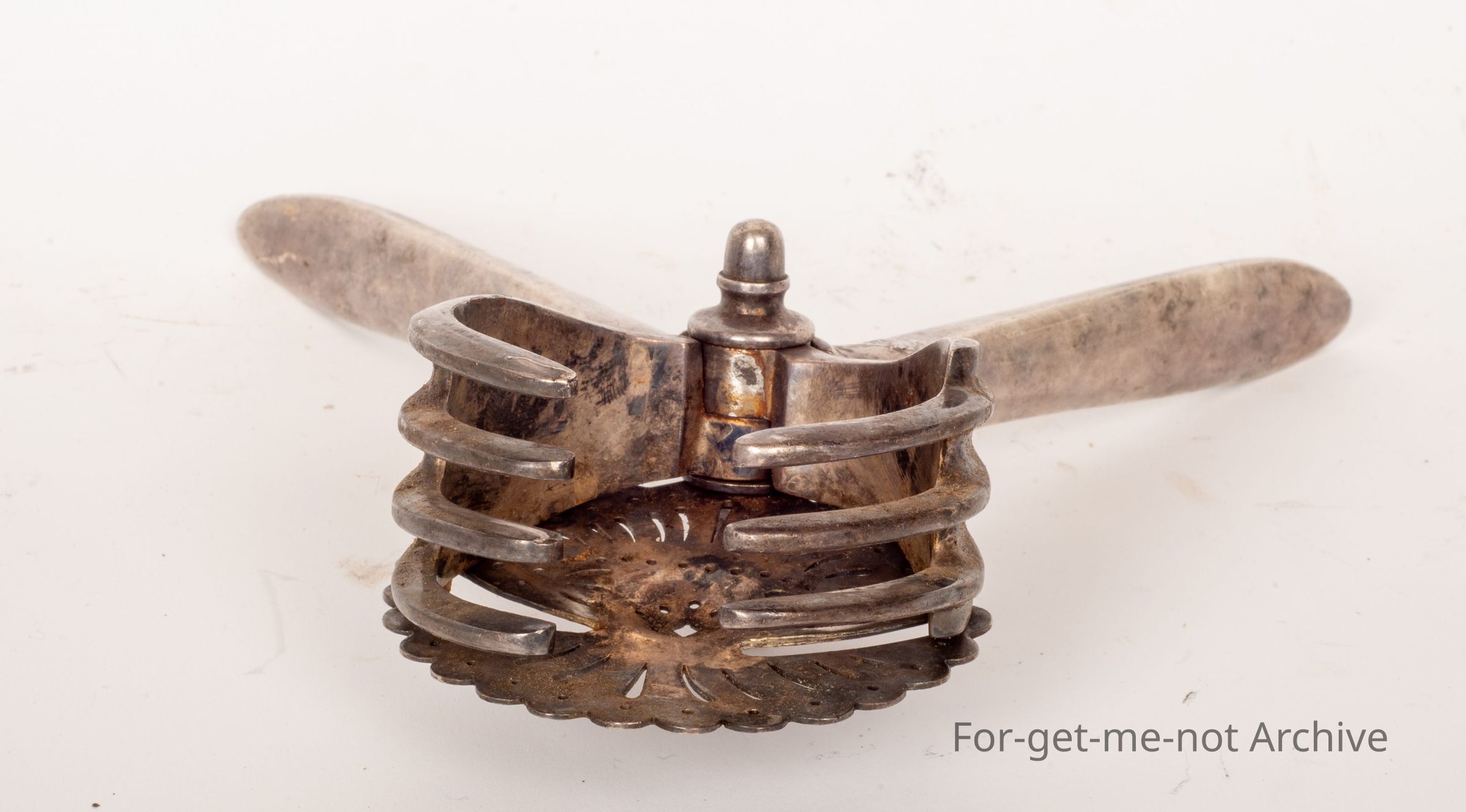 This is a beautiful silver lemon squeezer with like 2 forks that come together, to release the juice from the back of it. This was previously owned by, Charlie Jones's wife. A lovely Victorian pieceCollection