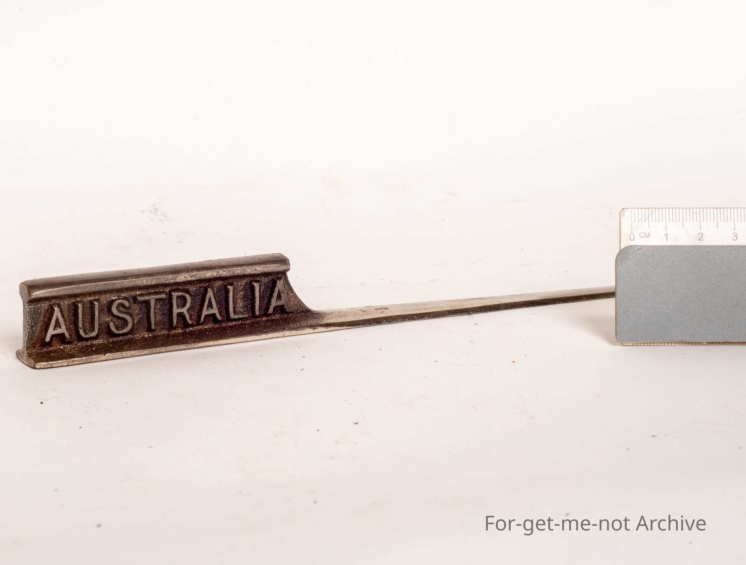 This is a scaled down section of railway line advertising BHB Company Limited Australia in the form of a letter opener, tapered down to a letter opener. A lovely bit of Australian advertising.Collection