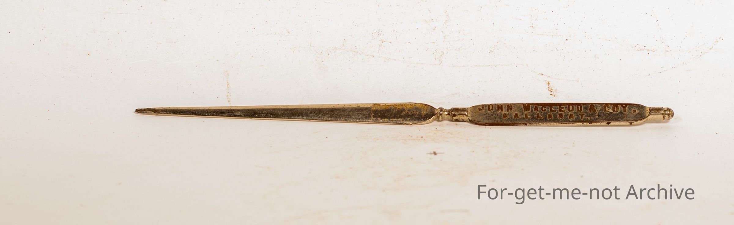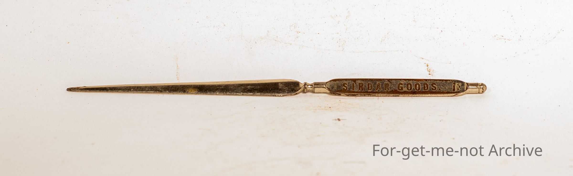 Letter opener from John McLeod and Co. Ballarat advertising "Sirdar Goods "