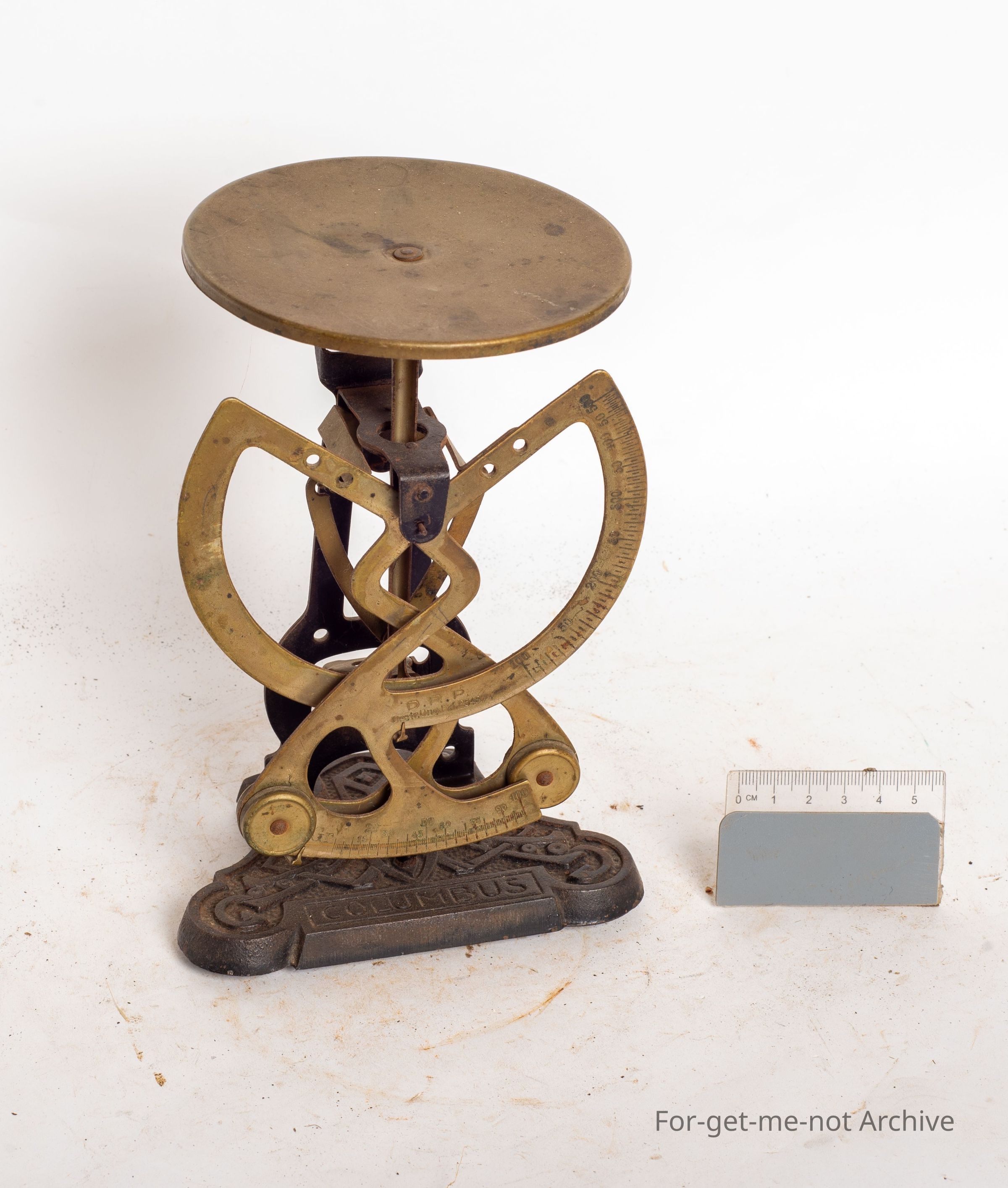 This is a lovely set of, letter scales largely made of brass, Cast iron base embossed with Columbus. Beautiful pair.