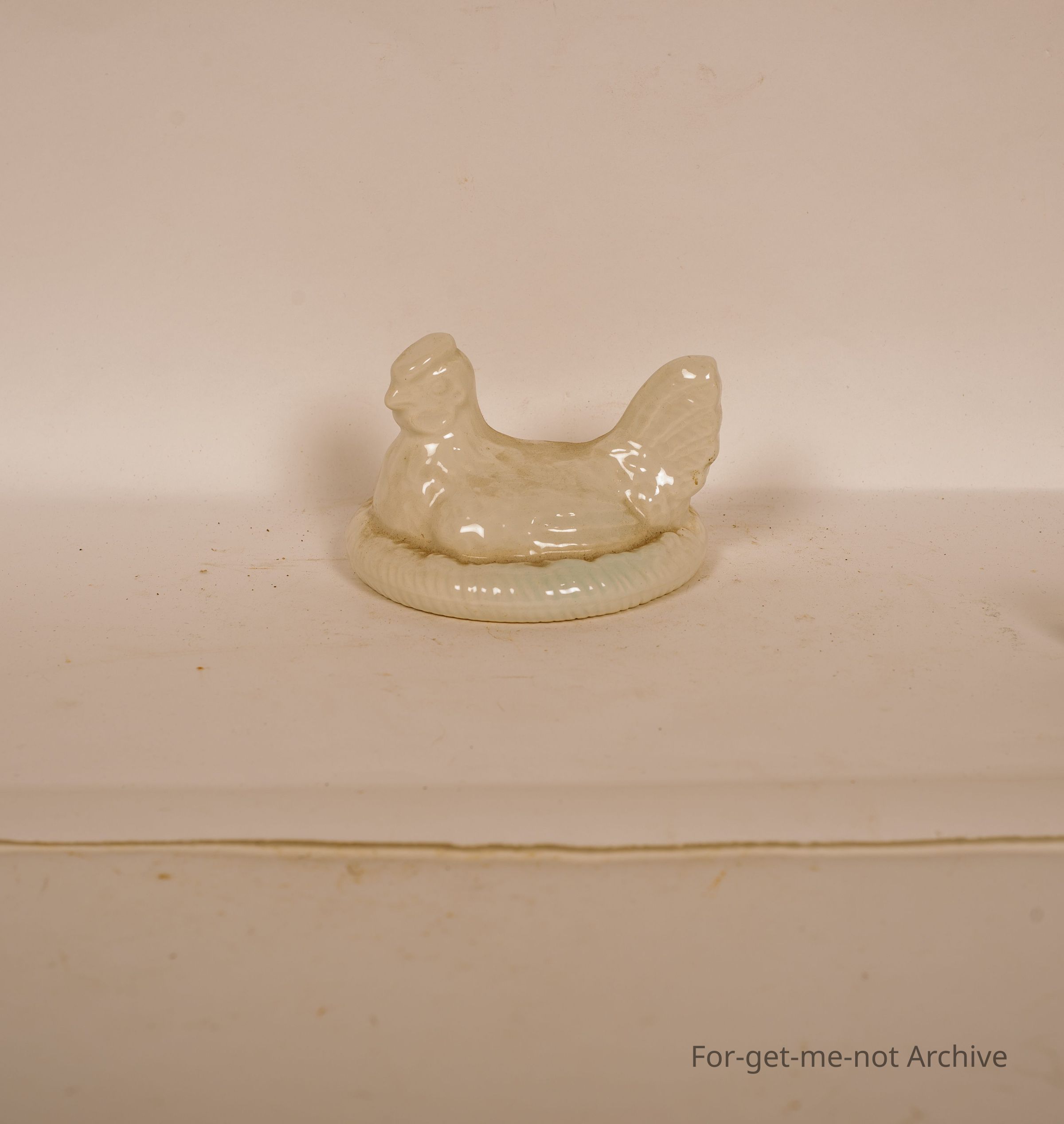 Ceramic chook on, like a lid, probably fitted on top of your bowl for protecting food