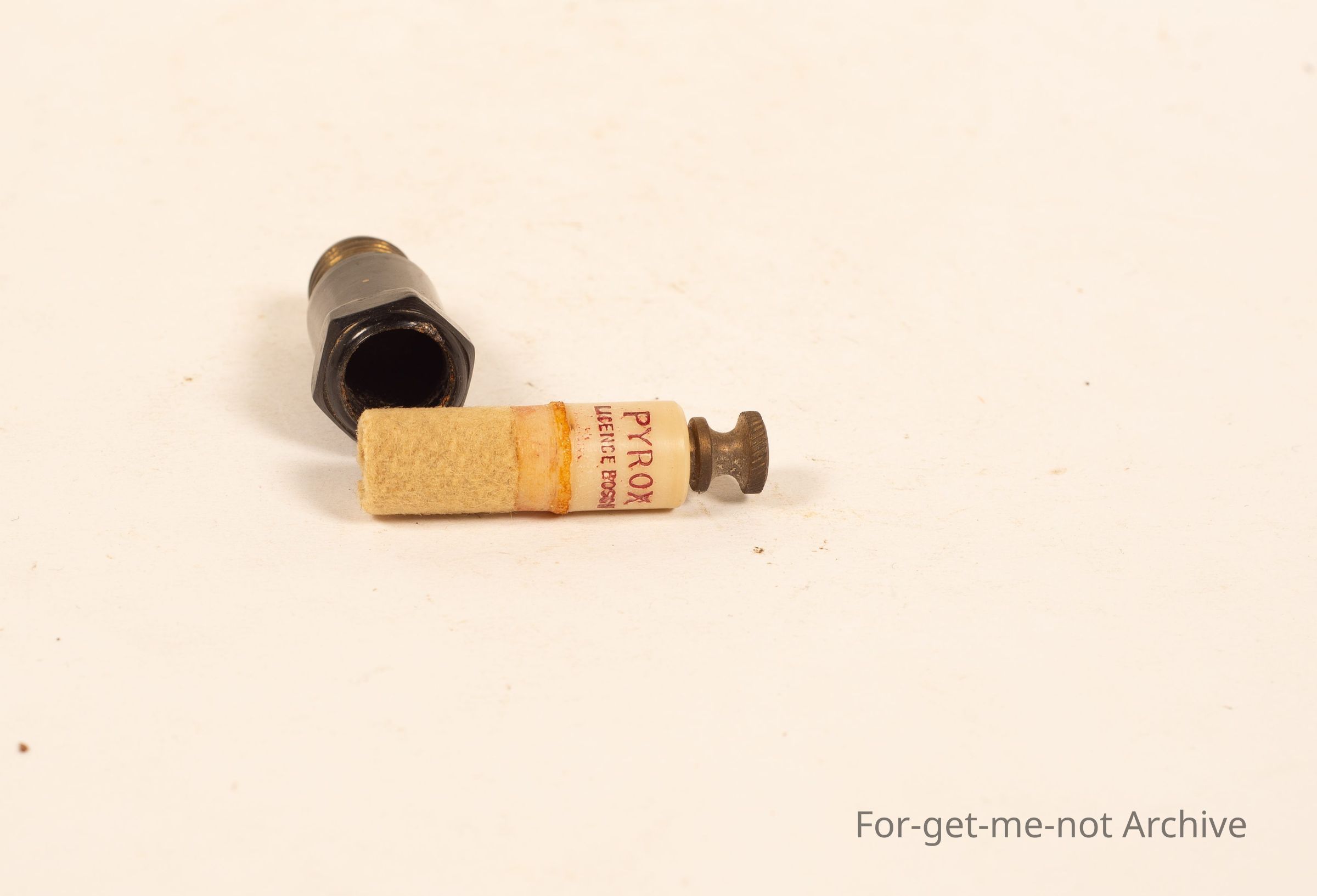 This is a novelty striker cigarette lighter called Pyrox in the shape of a spark plug license Boss.