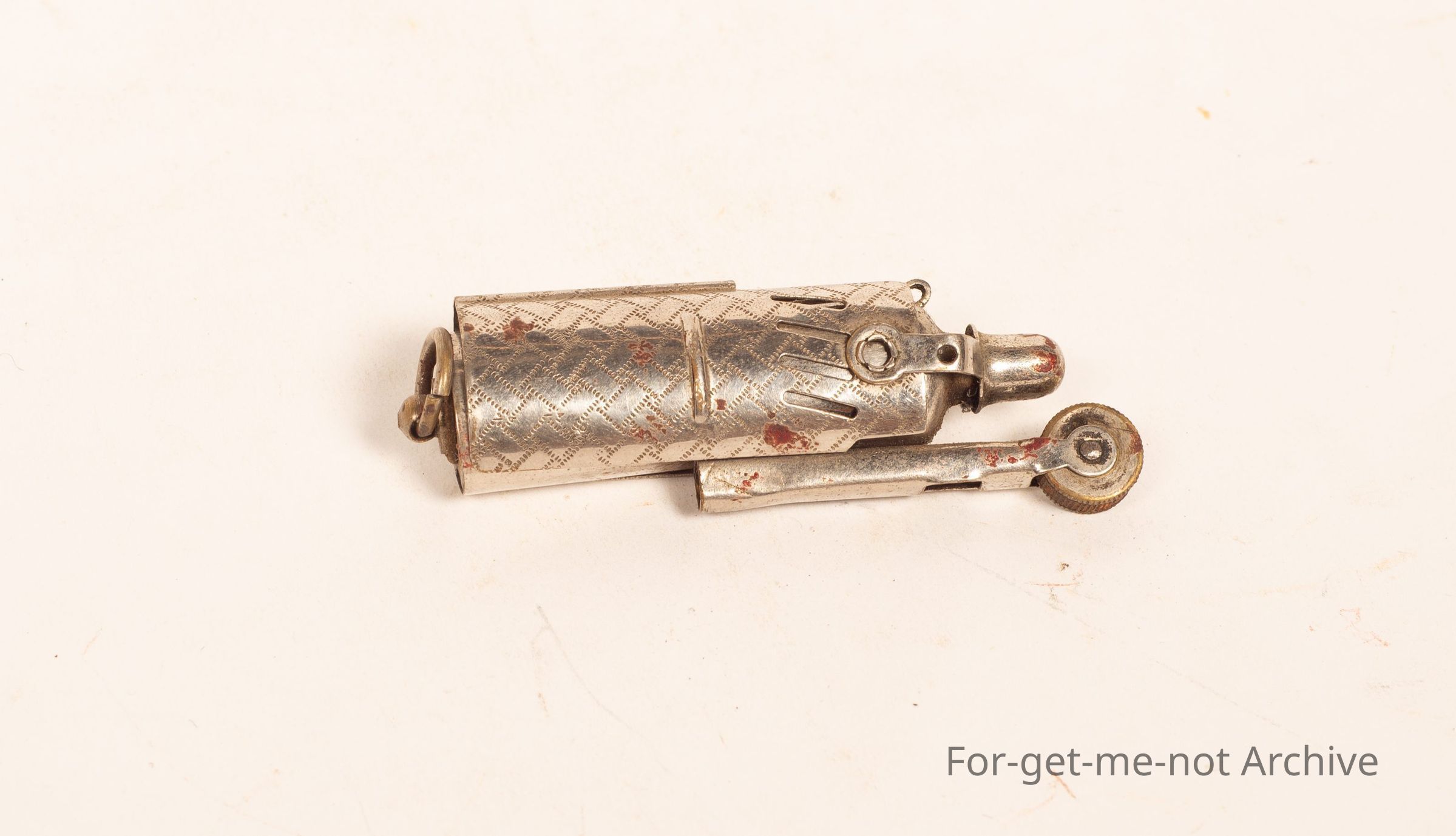Is a small cigarette lighter, I think, World War 2 issue. These were also in brass.