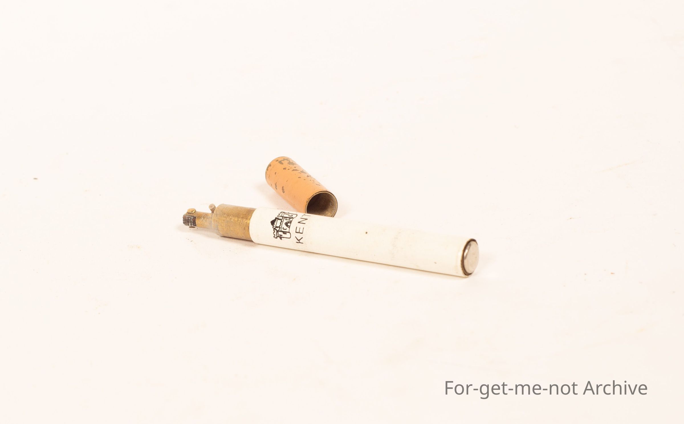 Is a novelty cigarette lighter in the shape and appearance of a cigarette. It is stamped Kent. Looks to be all complete. Very lightly made.