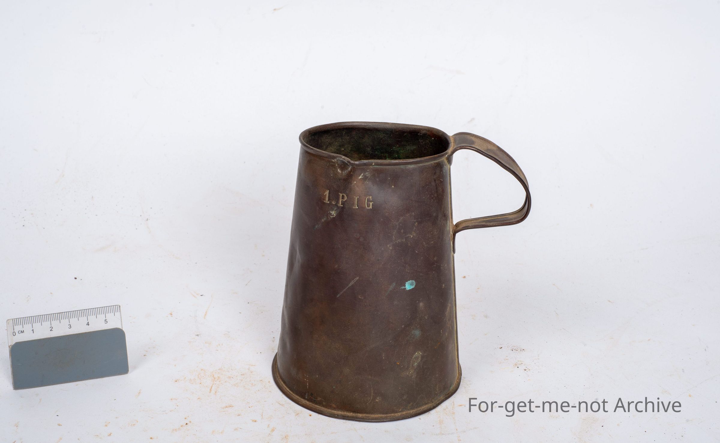 This is, a copper pouring vessel. It is stamped 1 pig. A very early fluid measure, very little information on the internet about this. It's still in very nice condition.