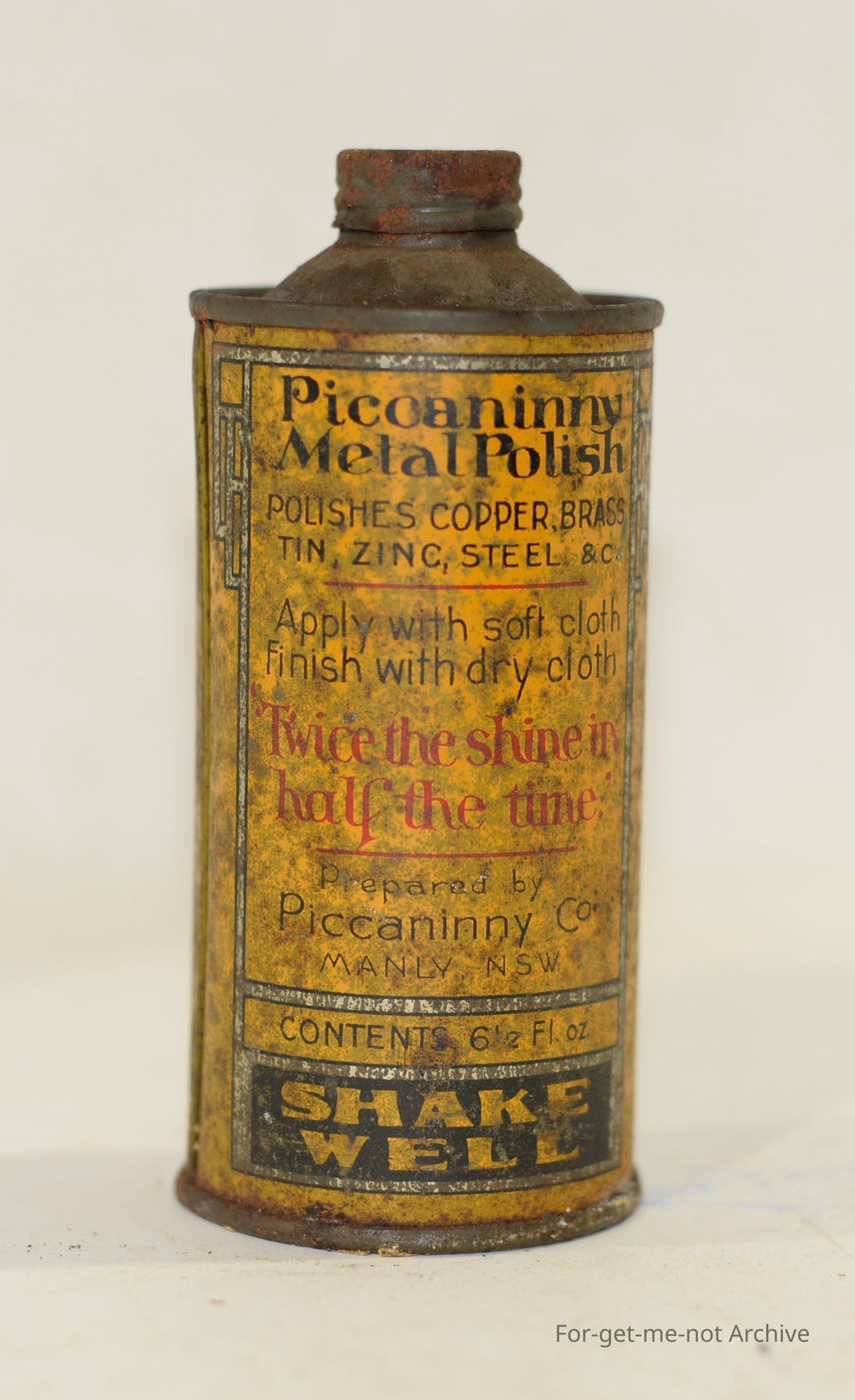 Piccaninny Metal Polish Tin early tin in poor condition with contents, Manly Sydney