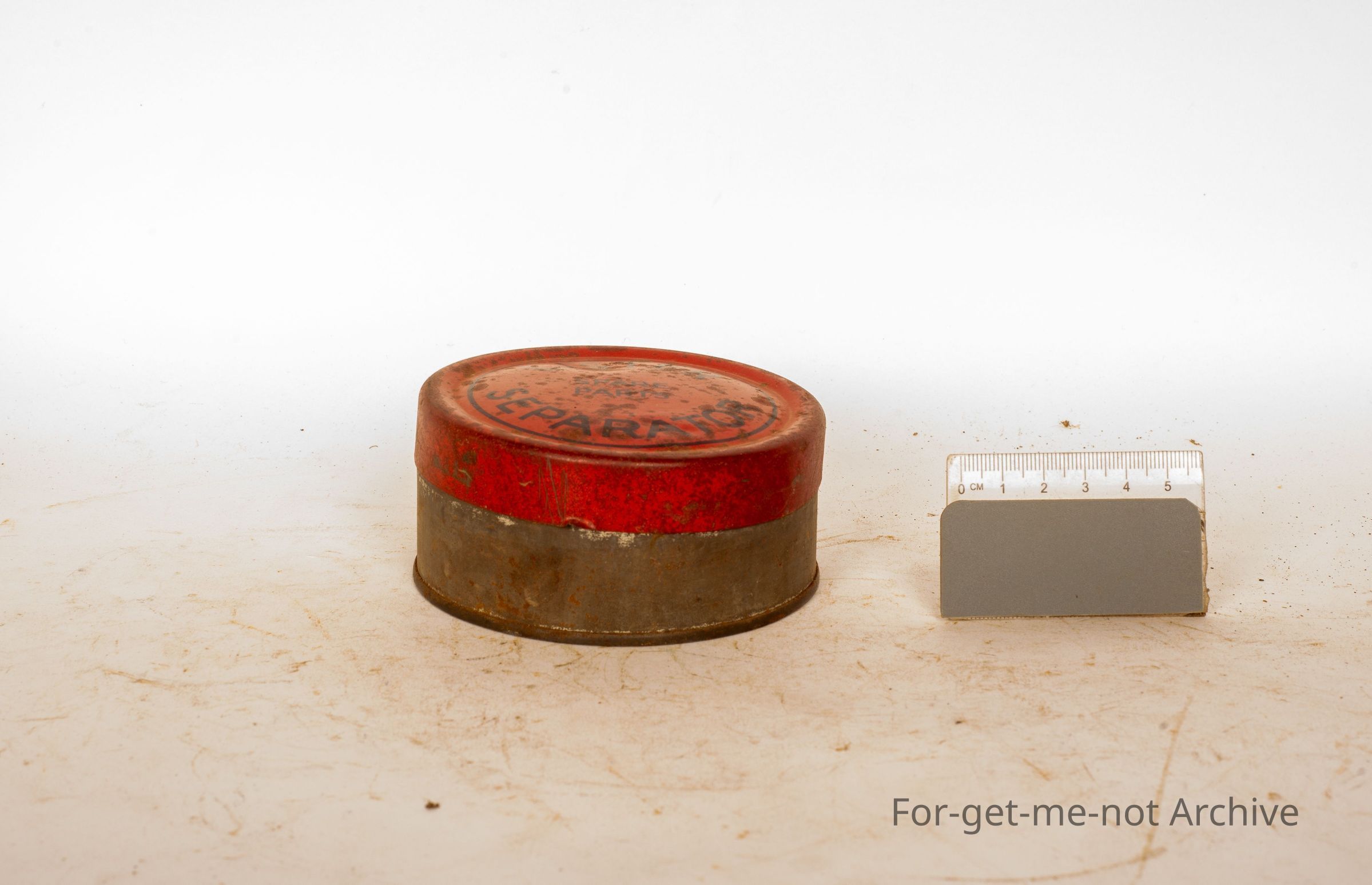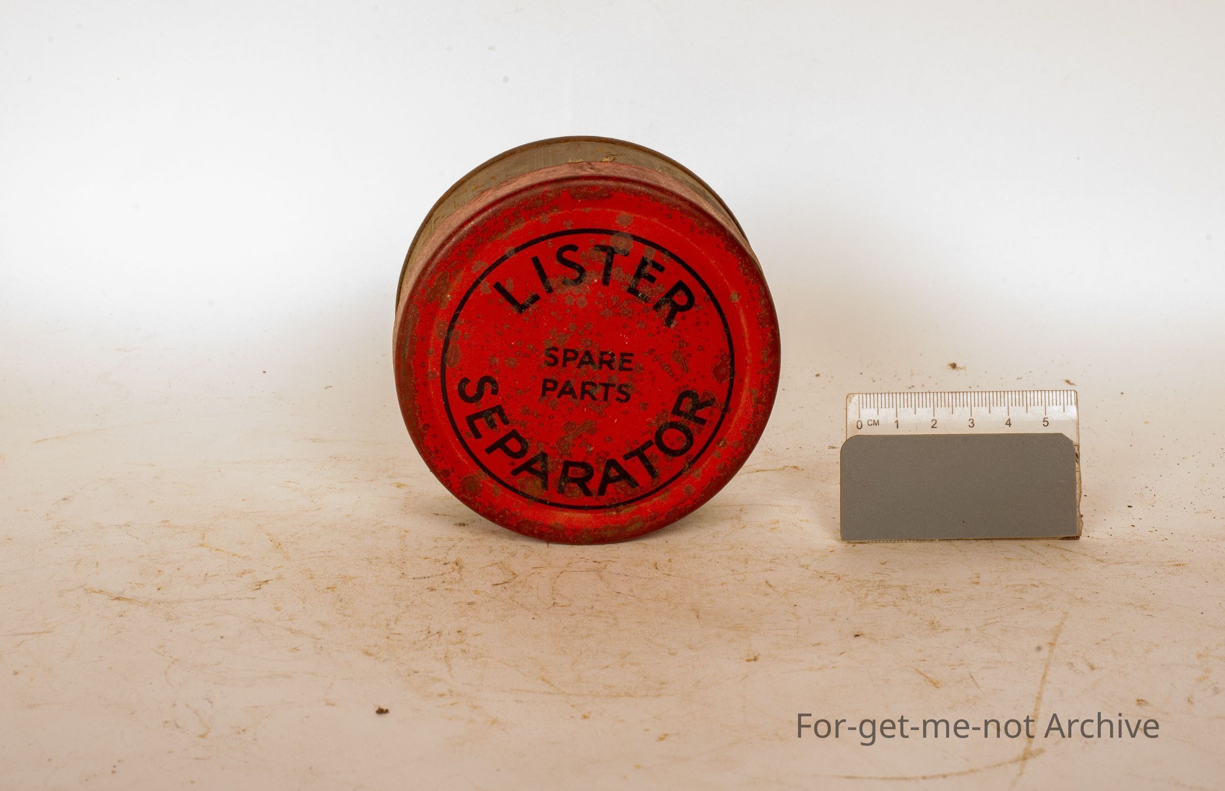 This is a tin put out by a Lister, Spare parts, for the separator in the tin.
