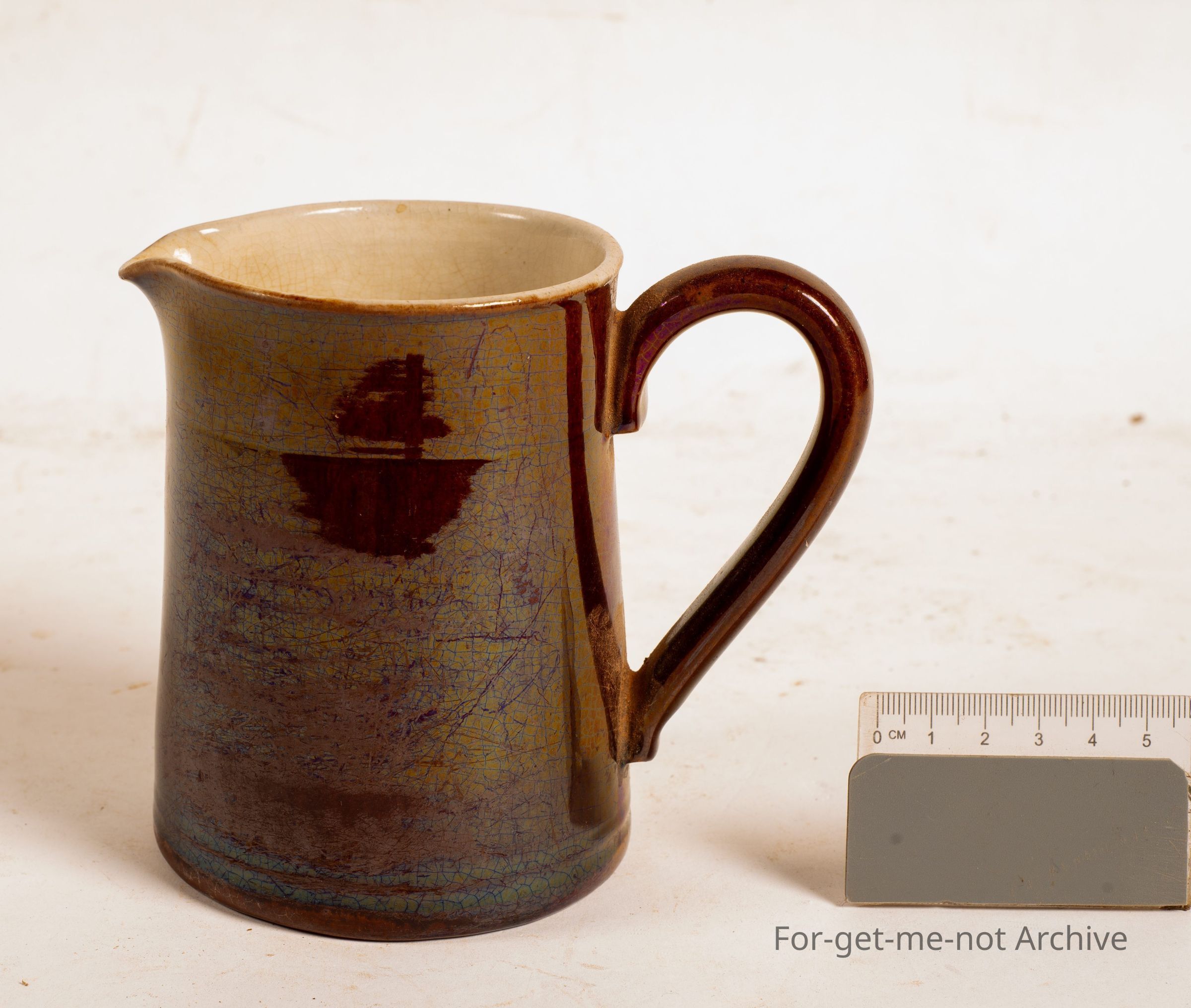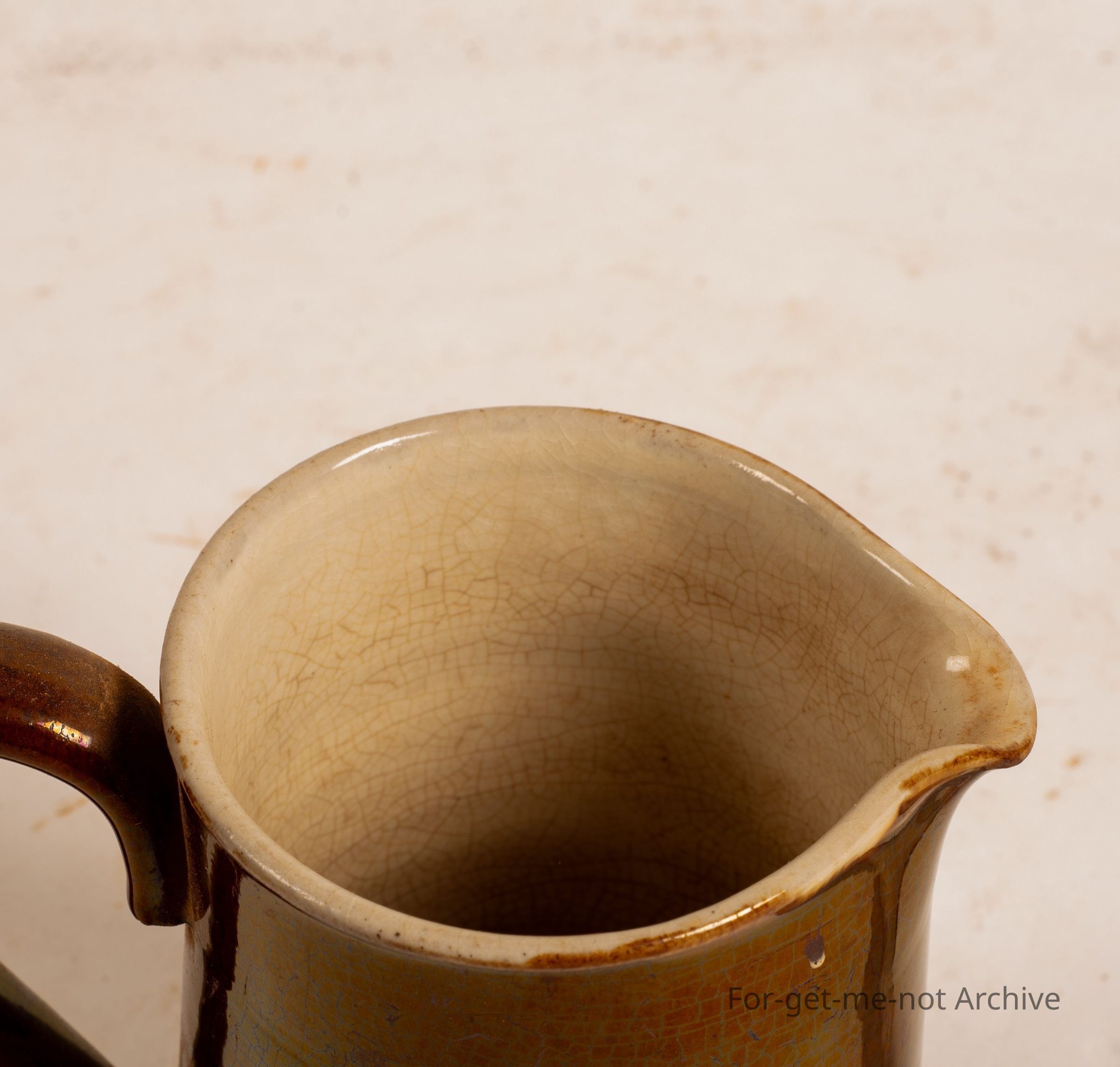 Another little milk jar, perhaps dark brown glaze, A white glaze inside probably of English origin