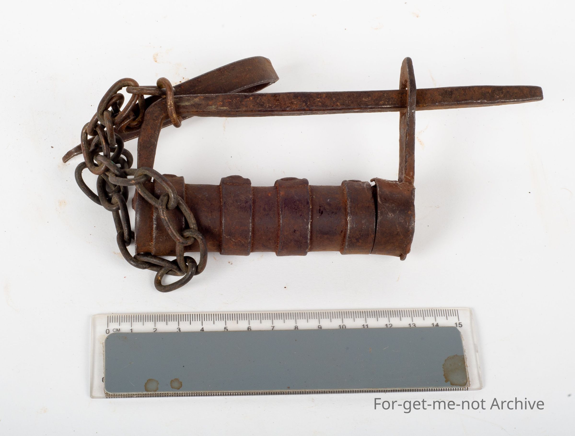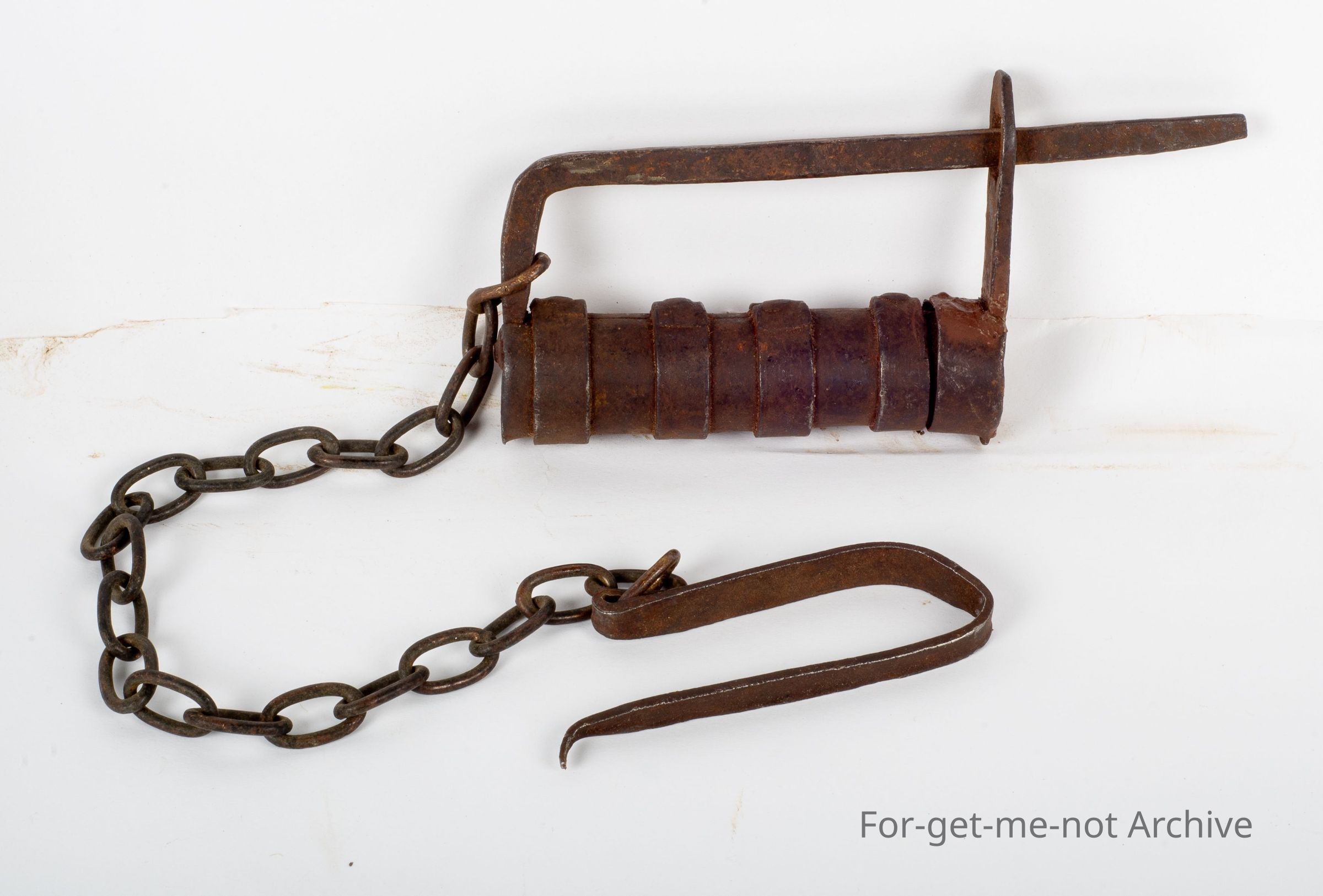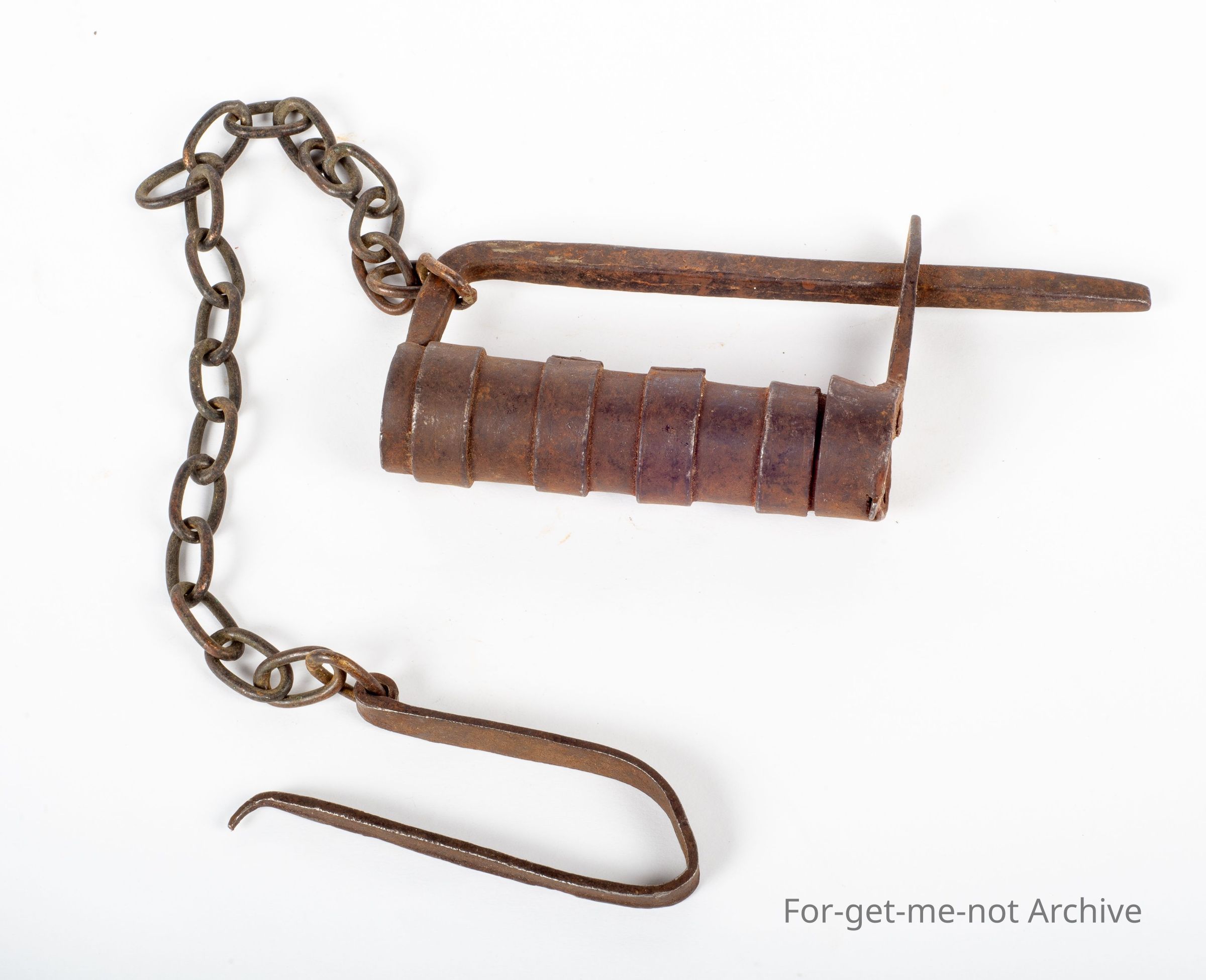 Early hand forged lock mechanism with key, probably of Asian origin, unusual to find with key