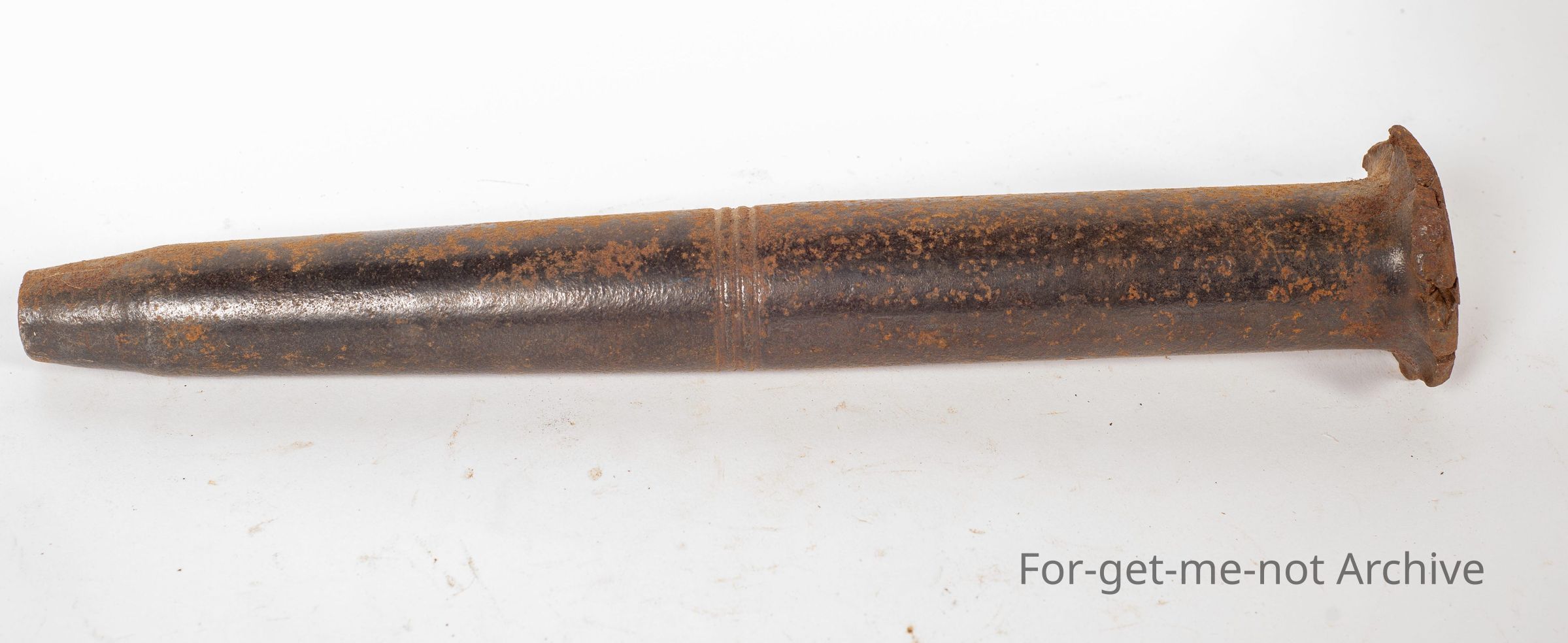 This is a log splitters, tool. A charge was put down the centre. They were hammered into the respective log. The fuse was lit, which comes out the side, and the explosion split the log. Quite a dangerous tool. This one, in very good nick. No maker's plaque on it, of course.Collection