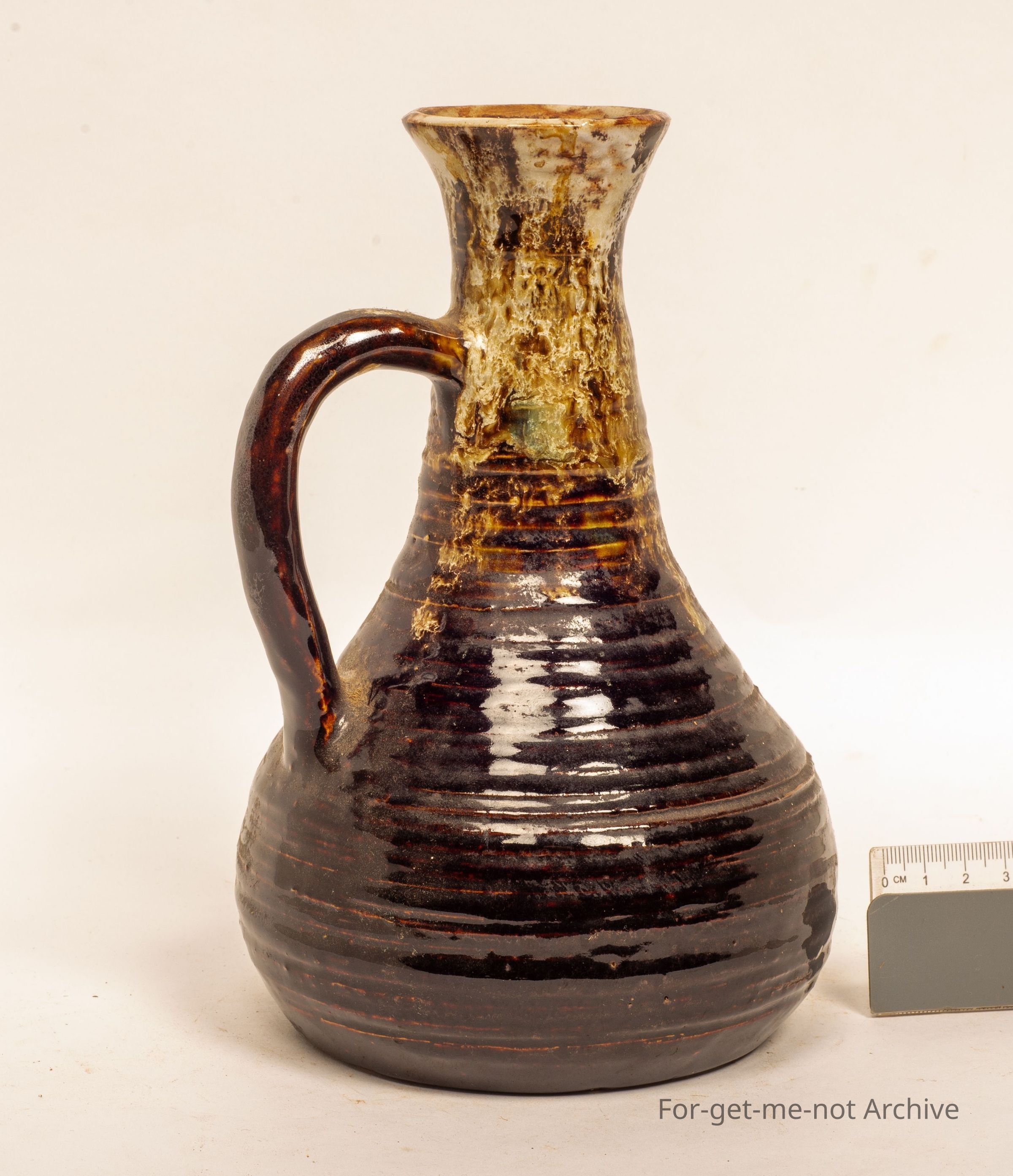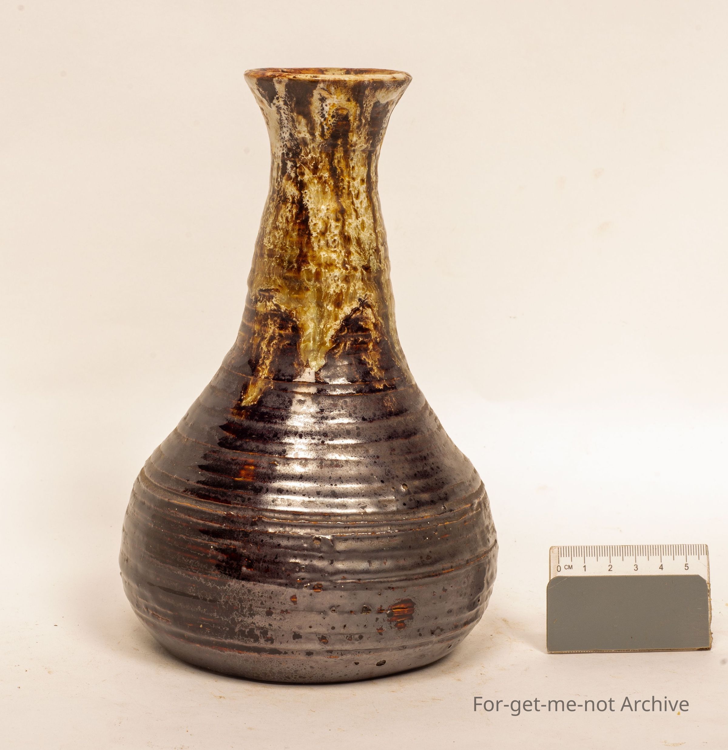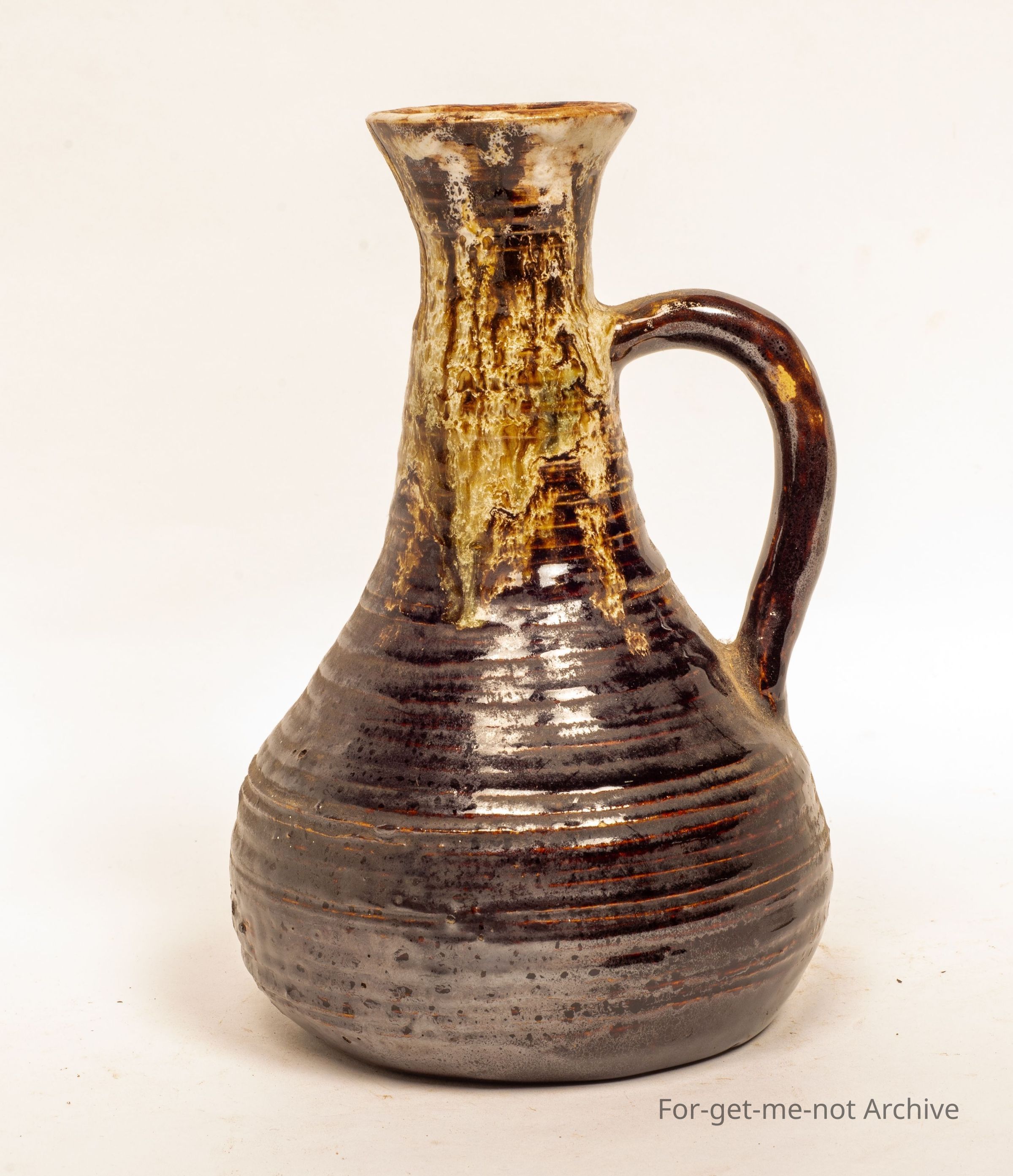 This is a tall, long necked, vase. Very, very typical 1970’s, handle, well formed. The inscription on the base is Lucy and Hatton Beck.