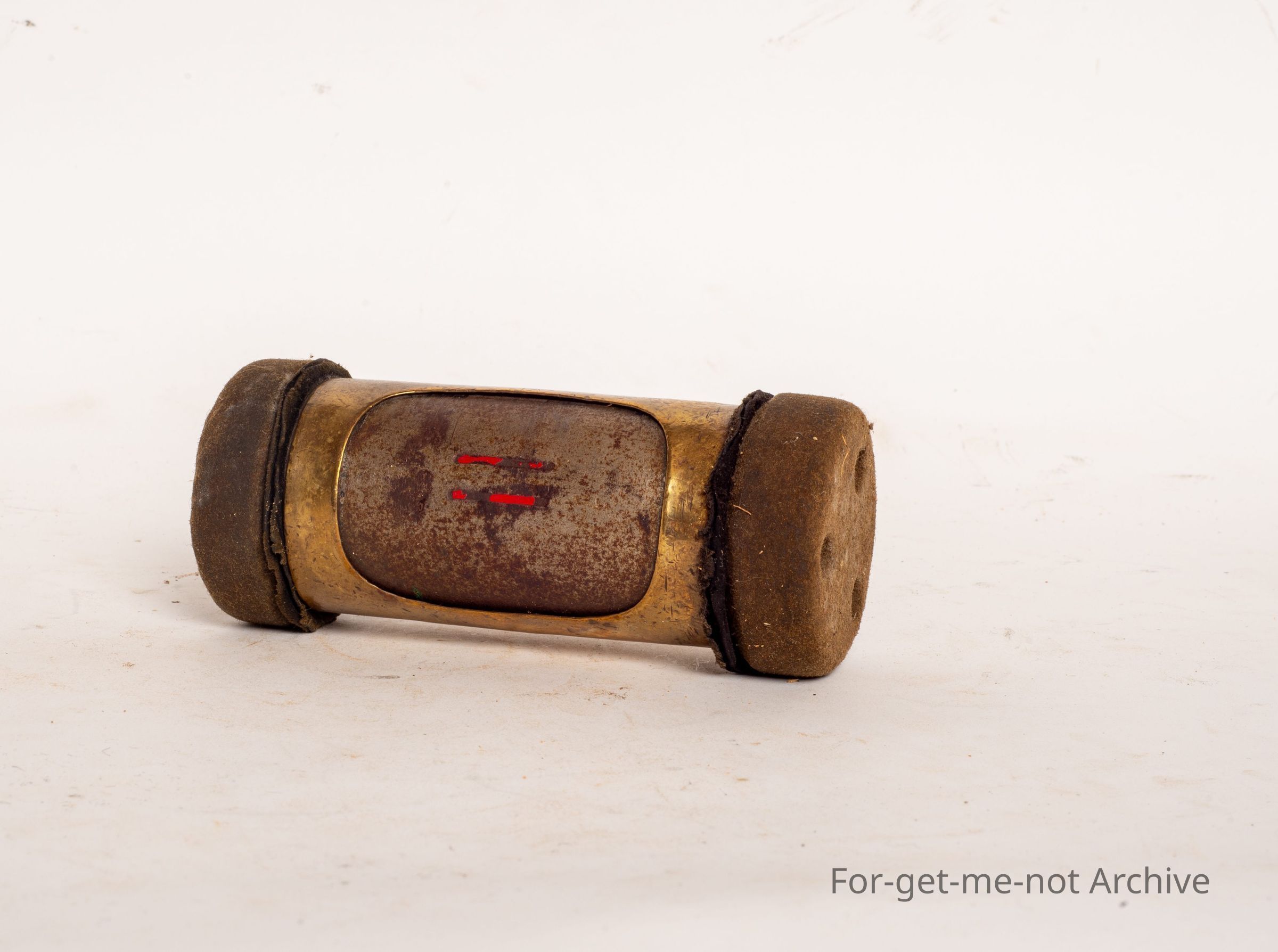 This is a Lumsden canister, made of brass. This worked on a vacuum chain shuttle from the early days. This is quite a rare one. Hard to find this model. A lightly stamped Lumsden on the side, in very good orderCollection