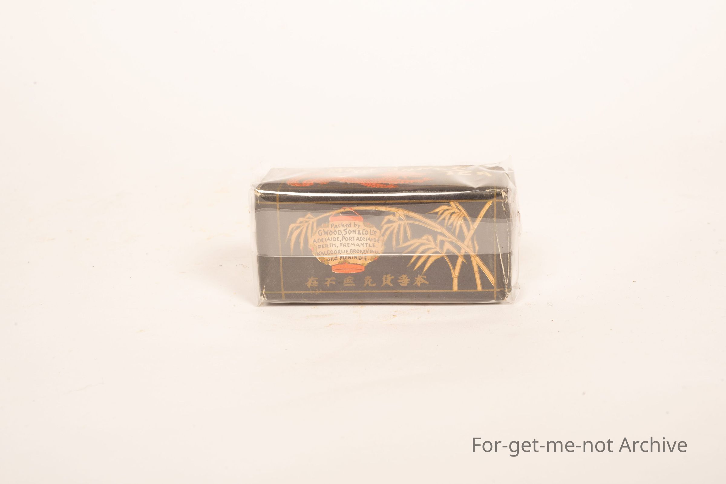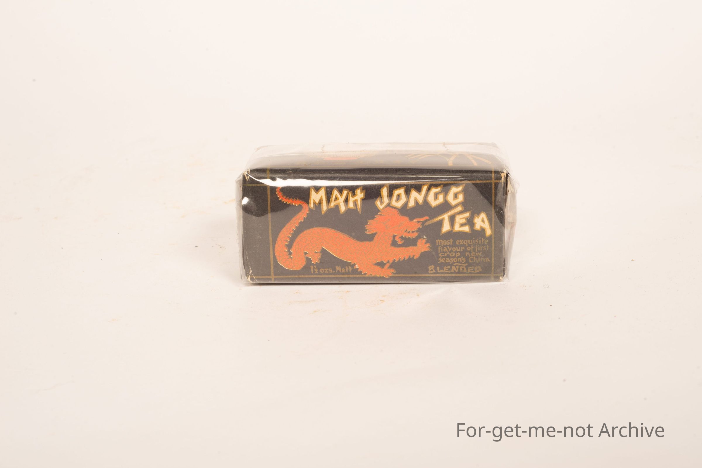 A small one and one half ounce packet of Mahjong blended tea, the Favorite tea crop of China. Images of dragons, packed by G Wooden Sun Adelaide, Port Adelaide, Perth Freemantle etcetera. Lovely little packageCollection