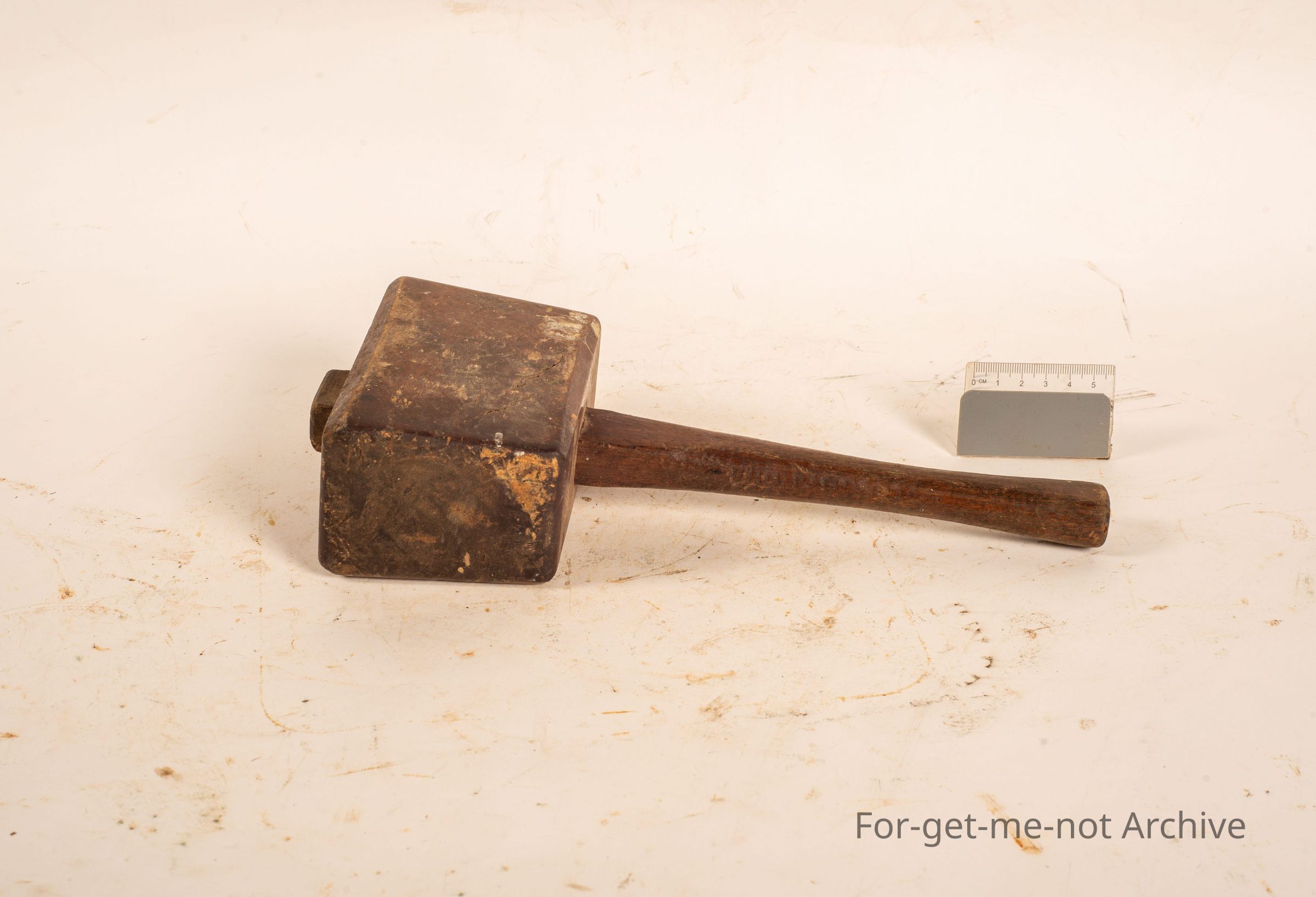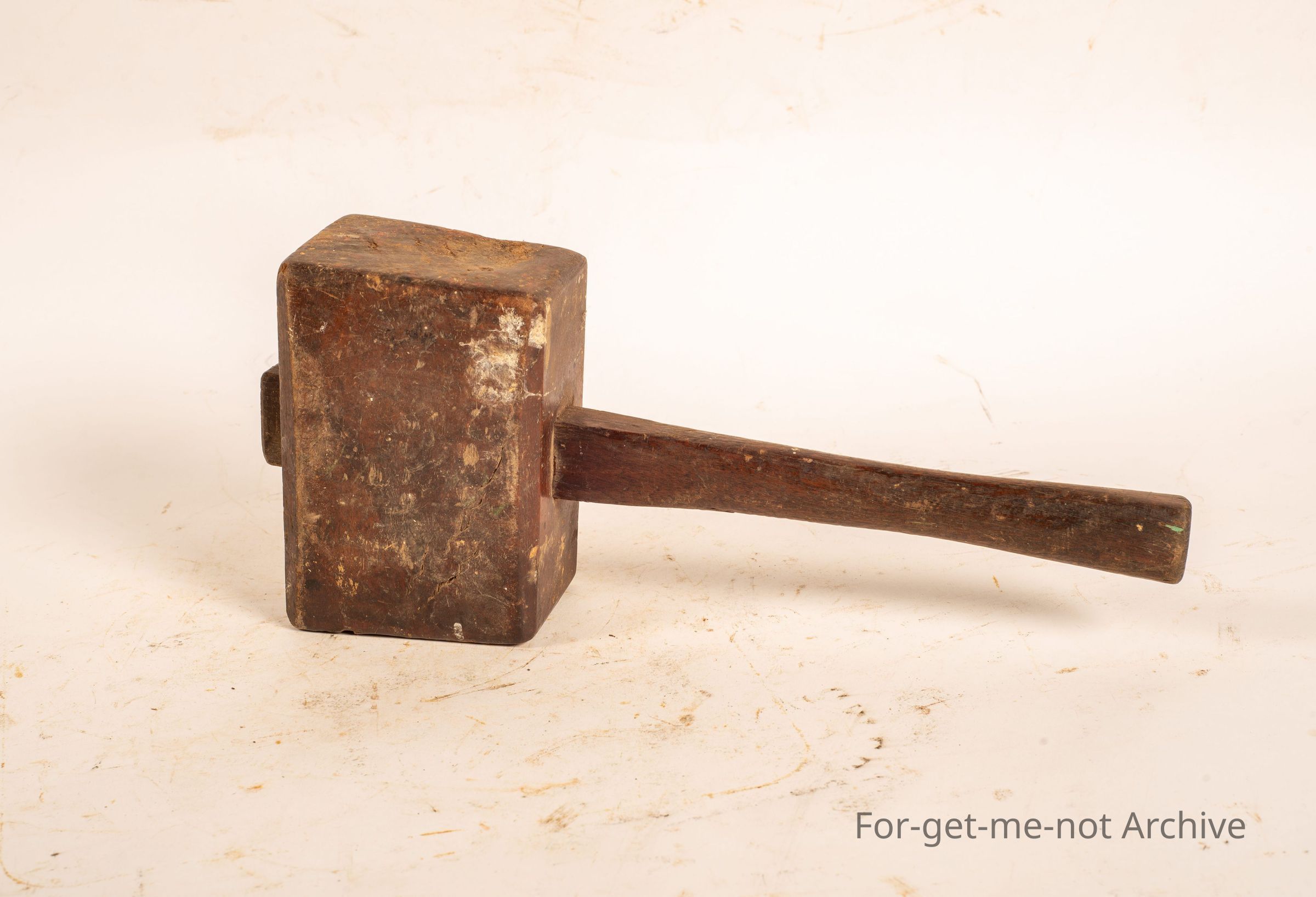This is a mallet usually used by carpenters. This one in very good order. The head's still pretty true. Hadn't been belted about. Nice wooden handle.