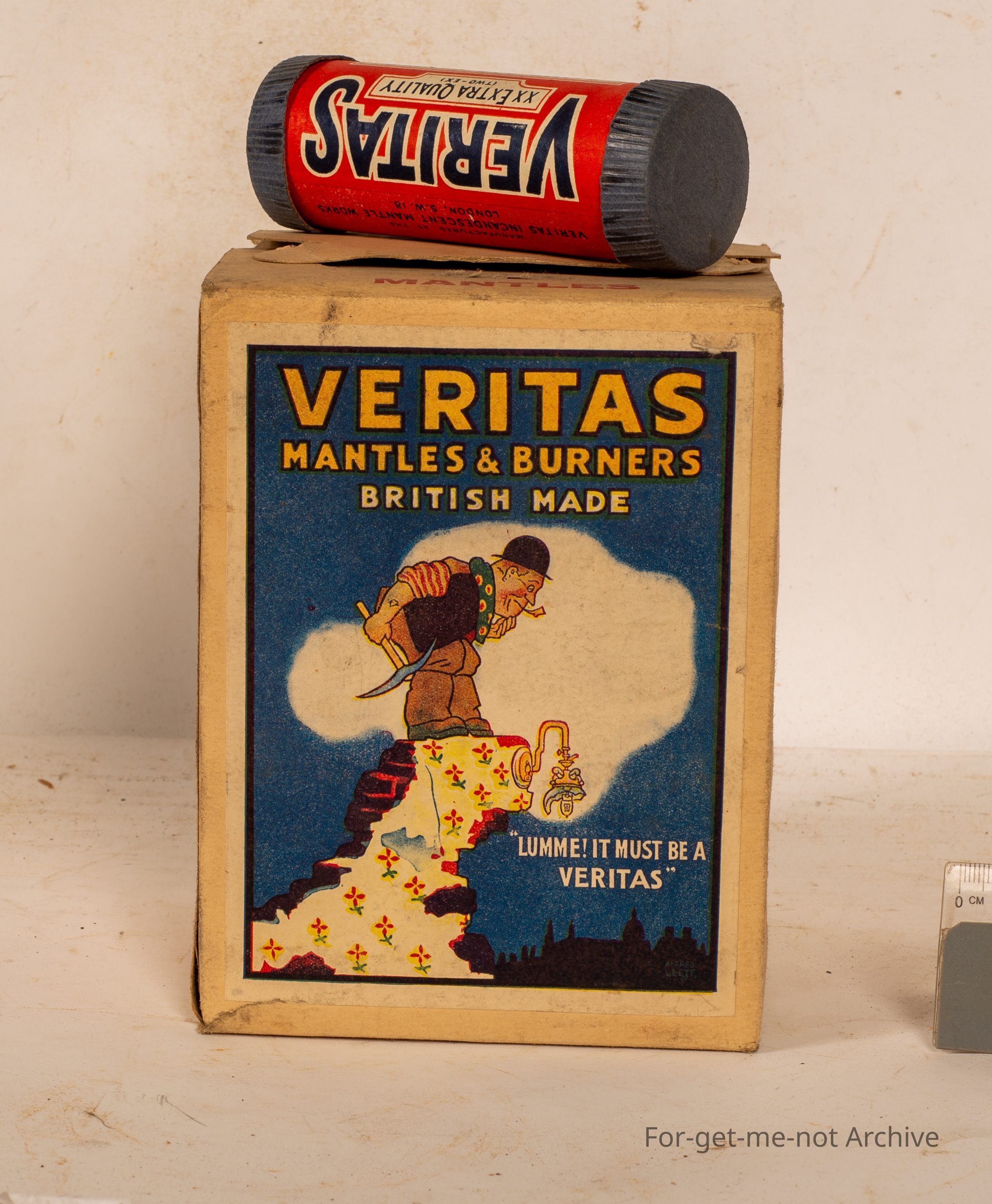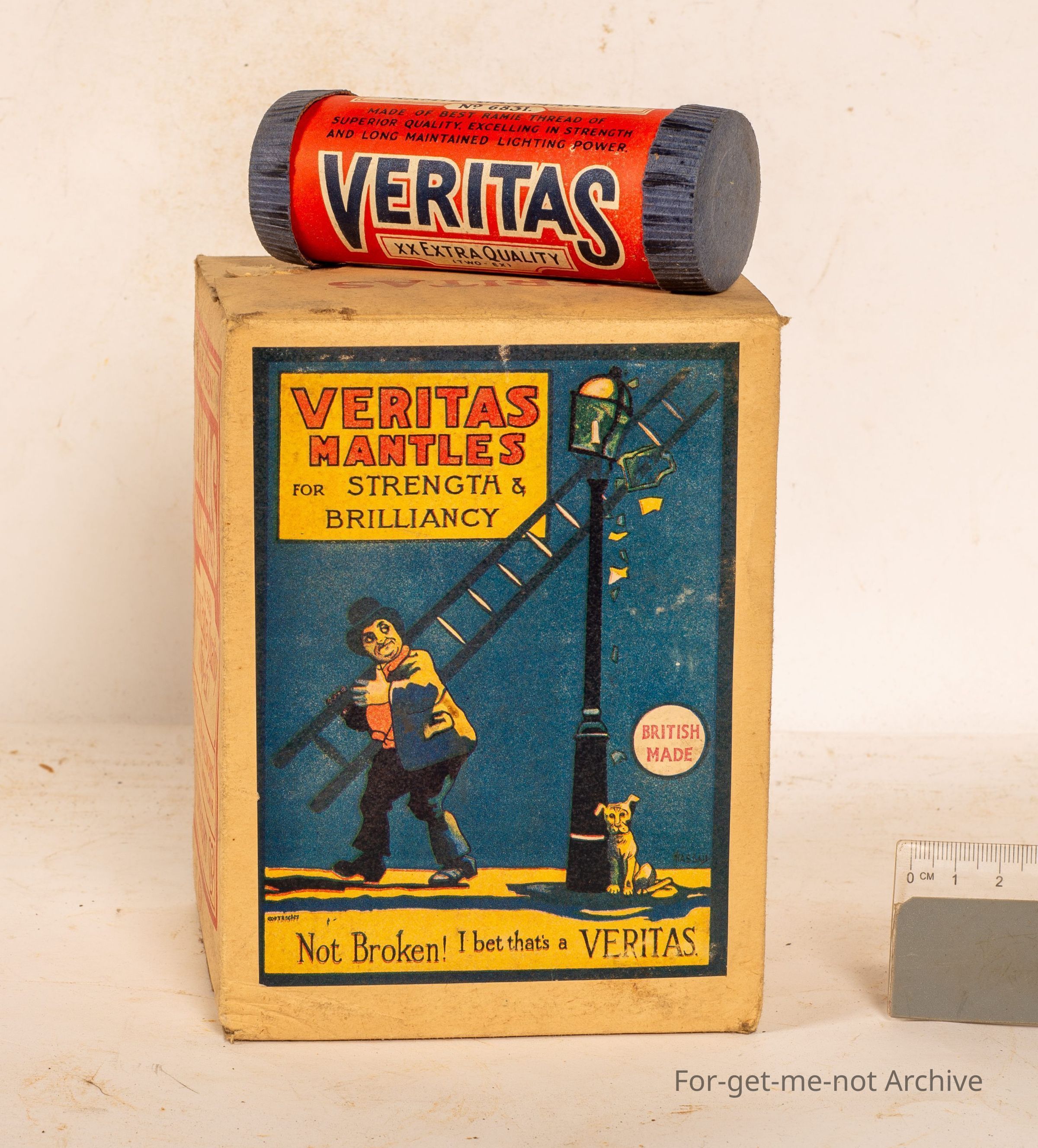 Sangeet Collection. This is a full box of Veritas mantles. The mantles are all in a cylinder in the box. The box is very decorative, advertising Veritas on all sides.