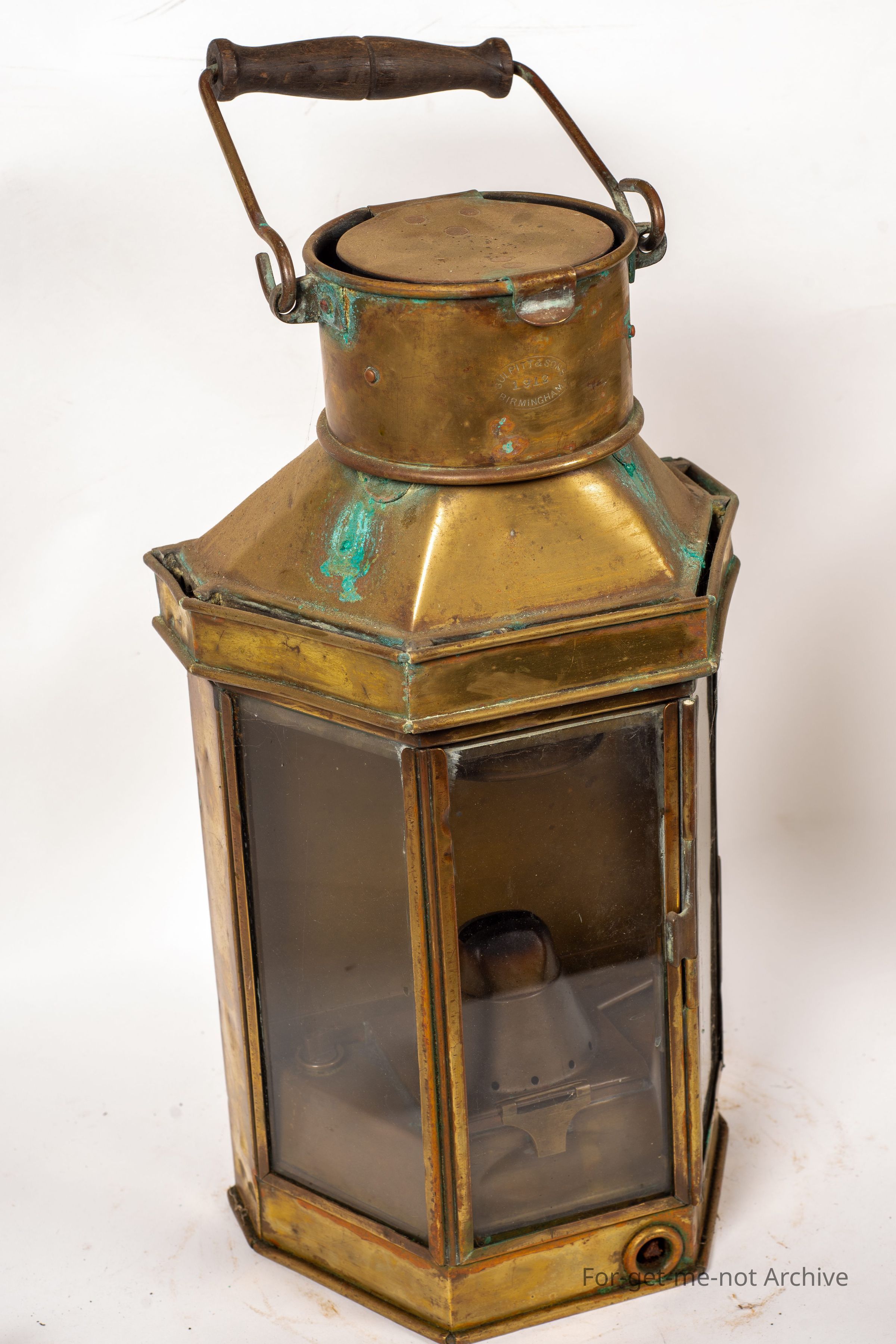 This is a full glass bodied marine lamp made by Bill Pitt and Son Birmingham. This is what's the segment of the ship that's on the higher level, you know, where they're captain Oh, the, the bridge. But this is one of the lamps that fitted into that front part on the deck of the ship. It's got a strange name. Yeah. It's the Poop deck. Beautiful lamp, quite significant and early.Collection